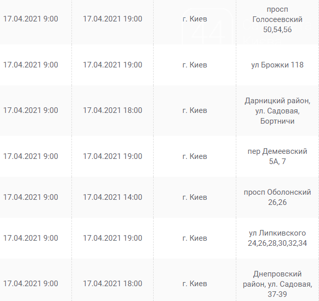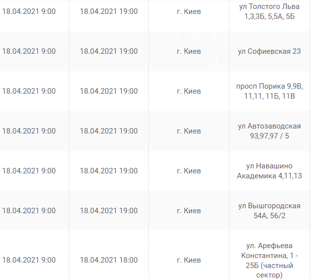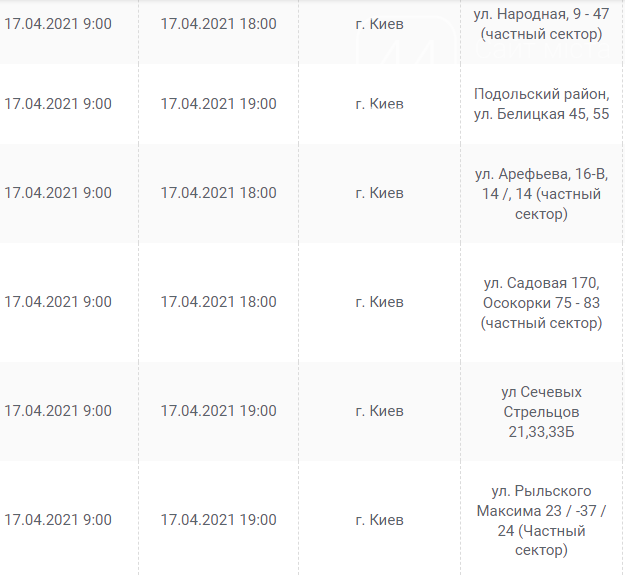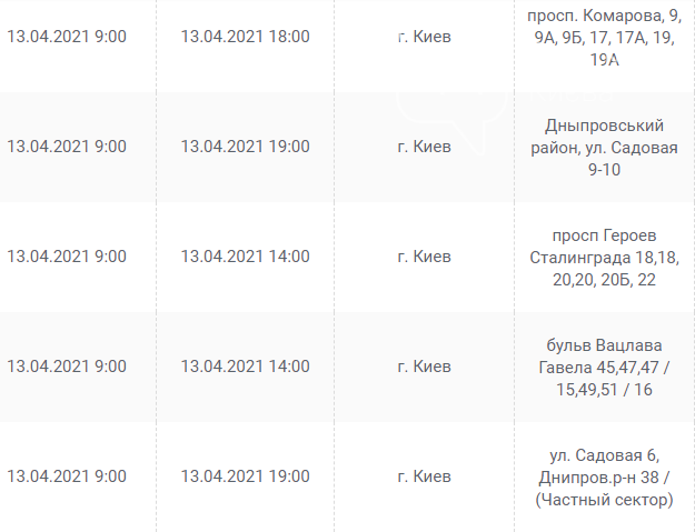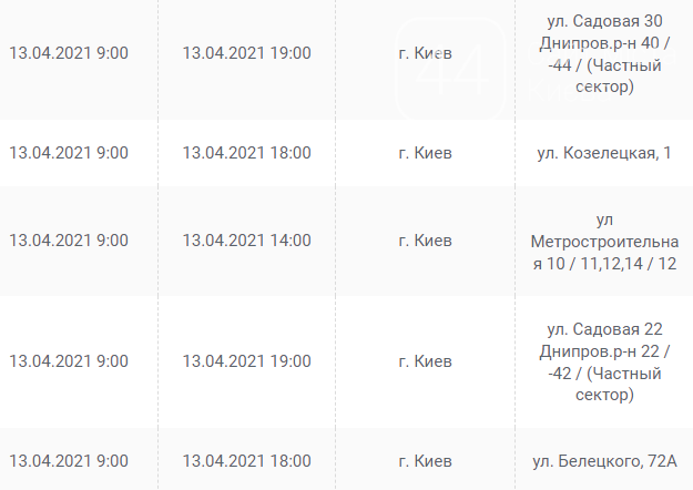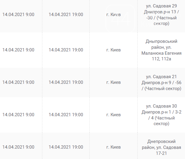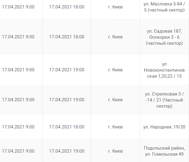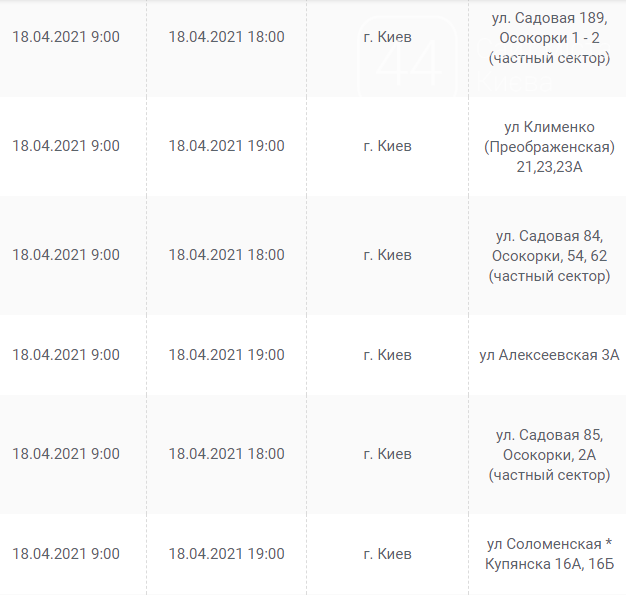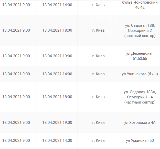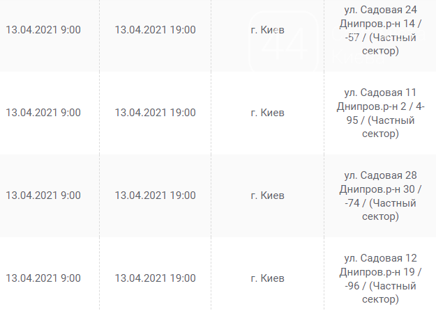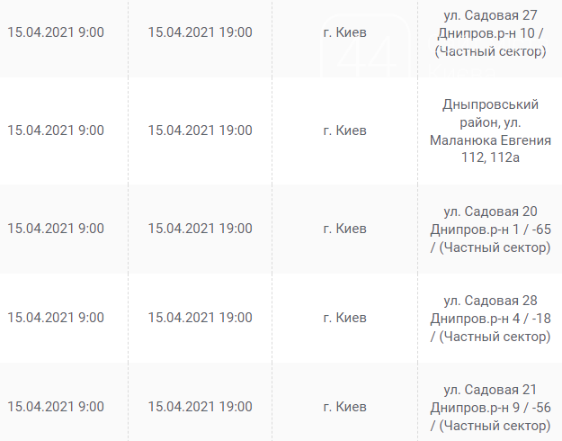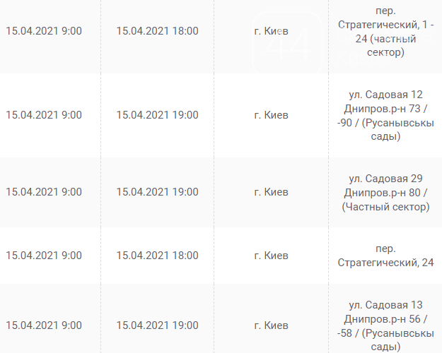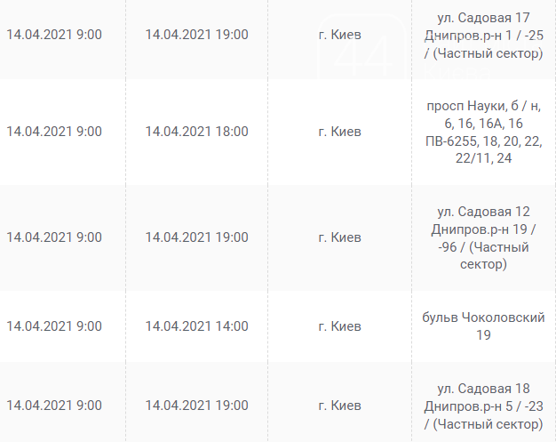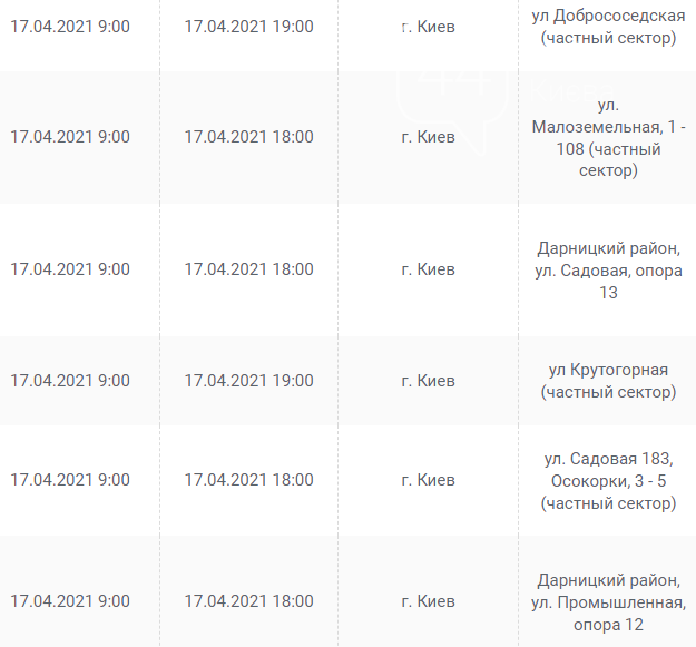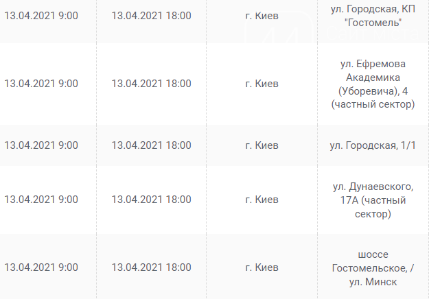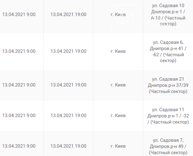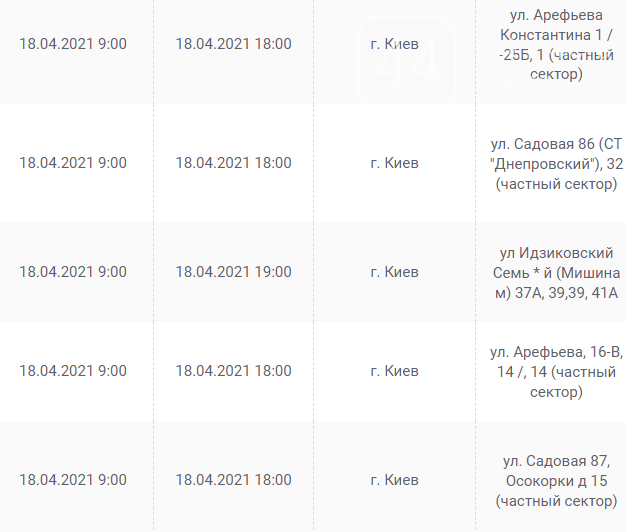 Киев, 12-18 апреля, график отключения электроэнергии: