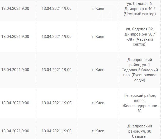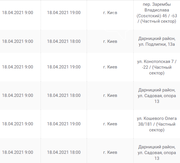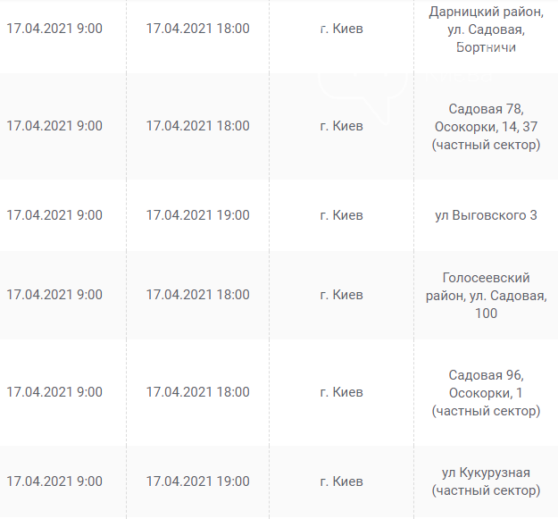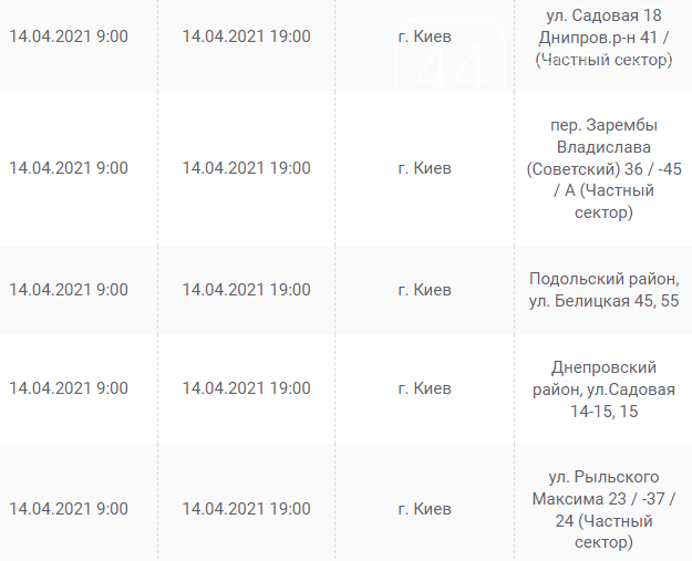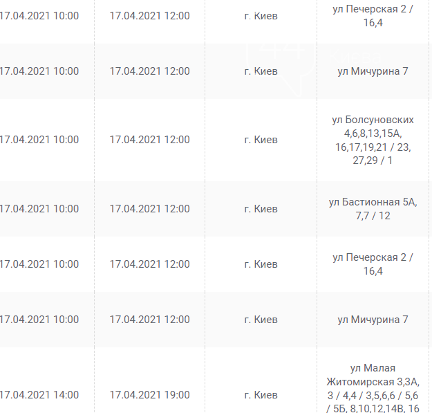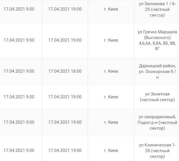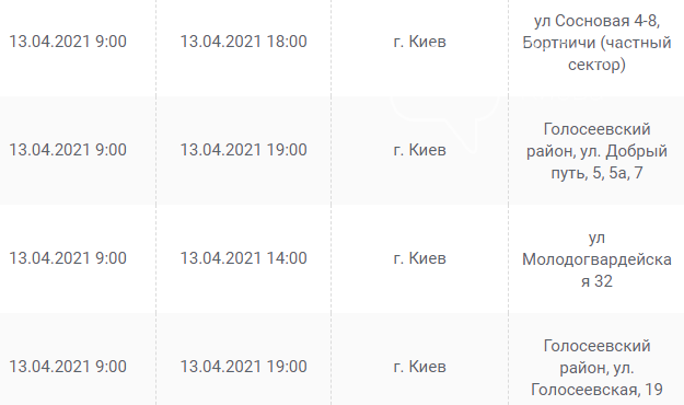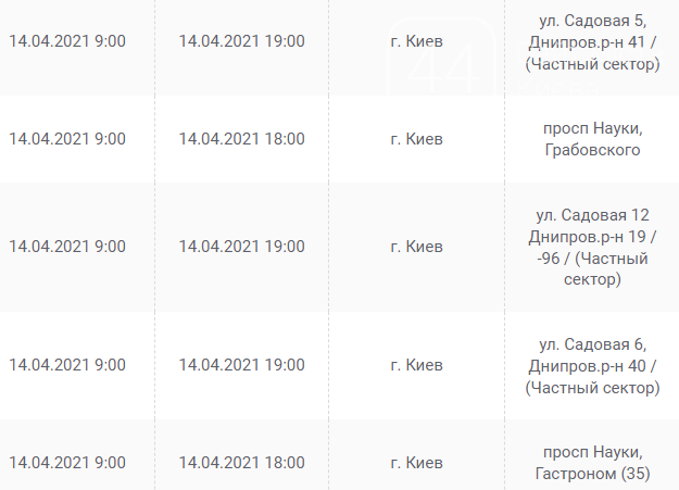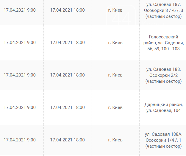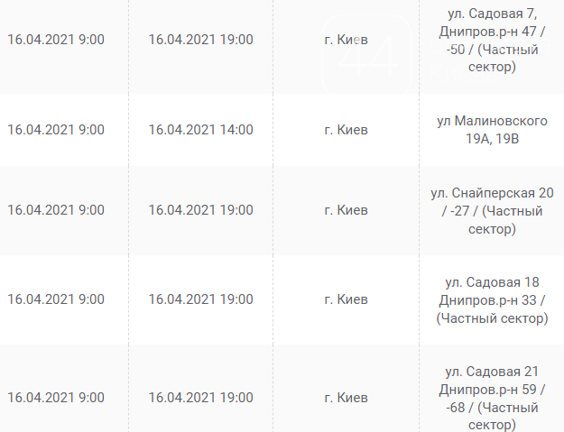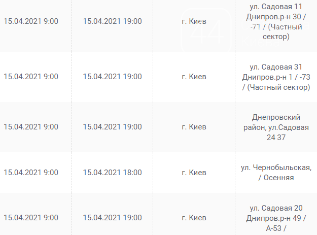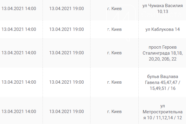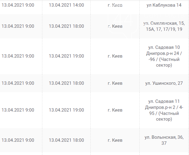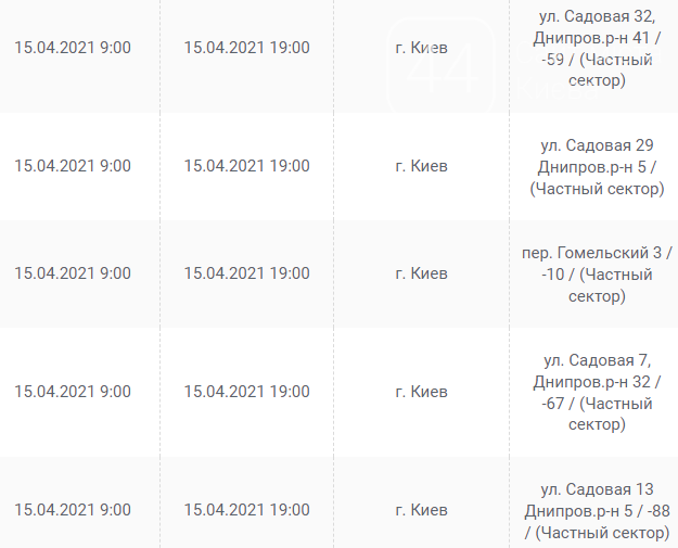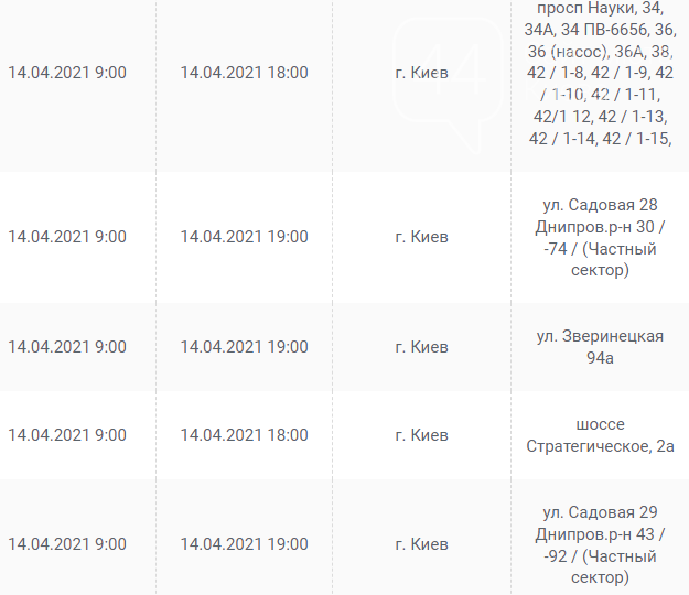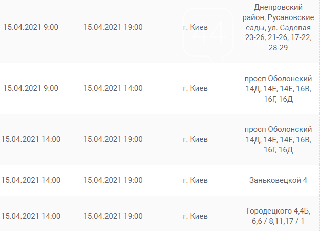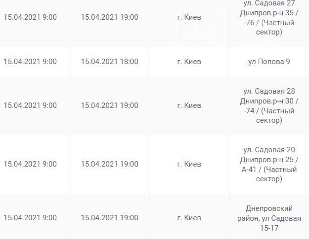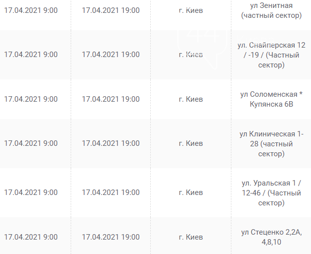 Киев, 12-18 апреля, график отключения электроэнергии:
