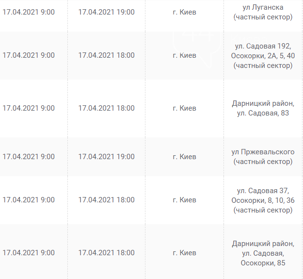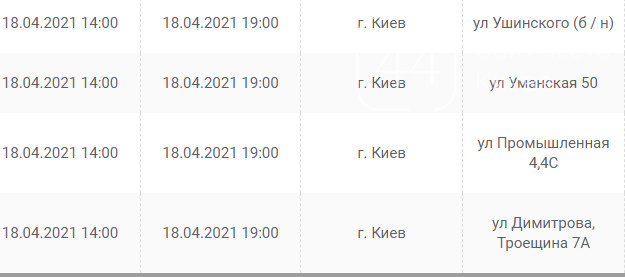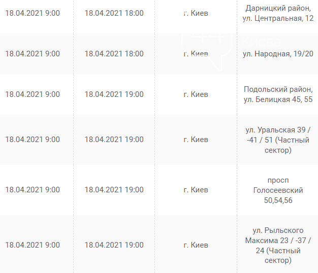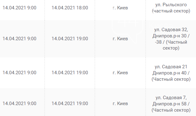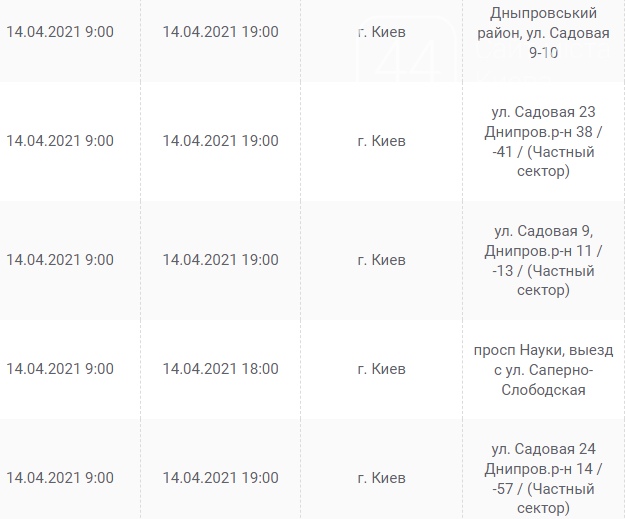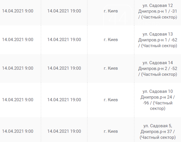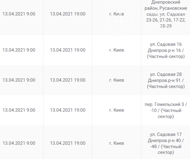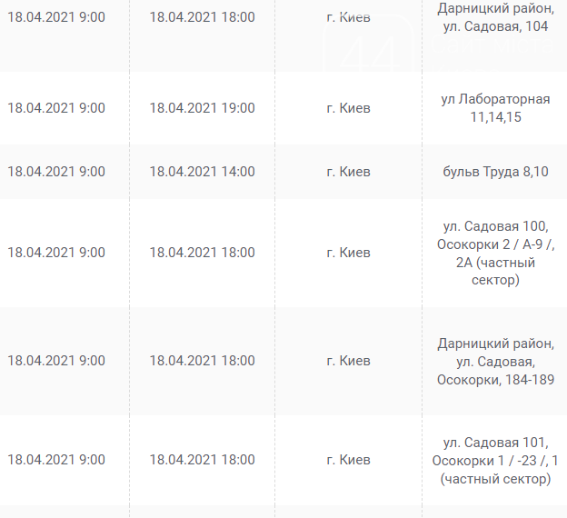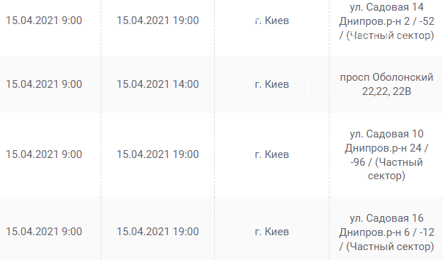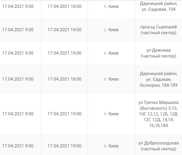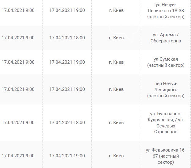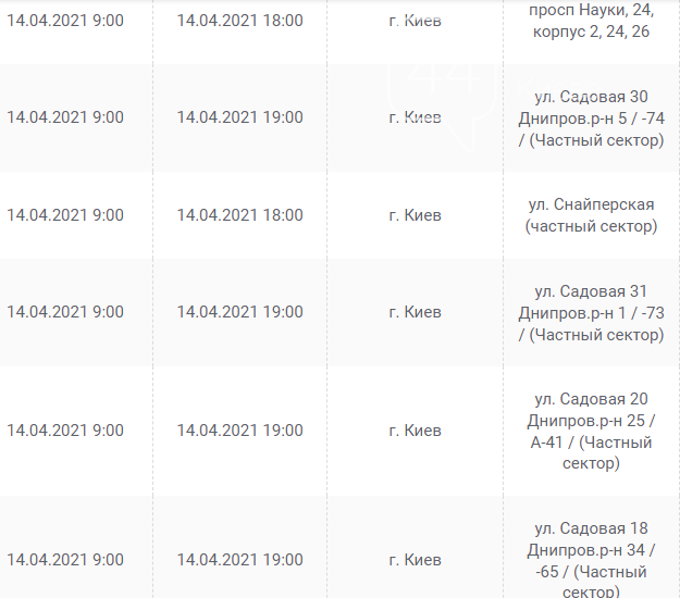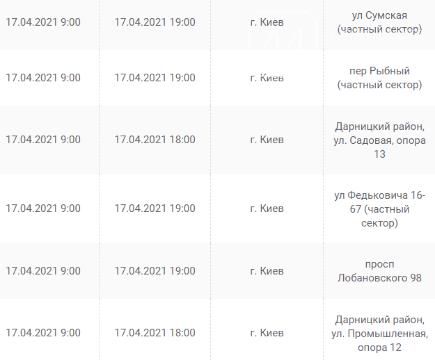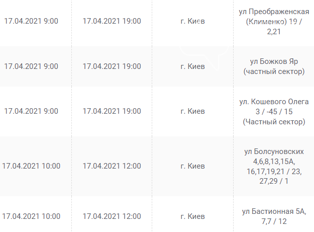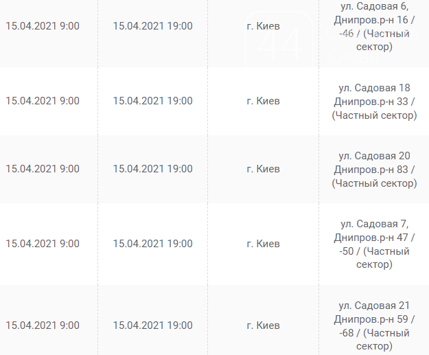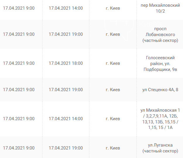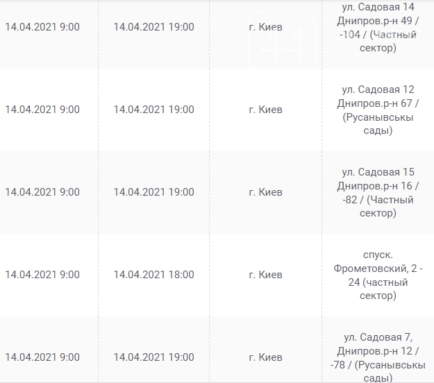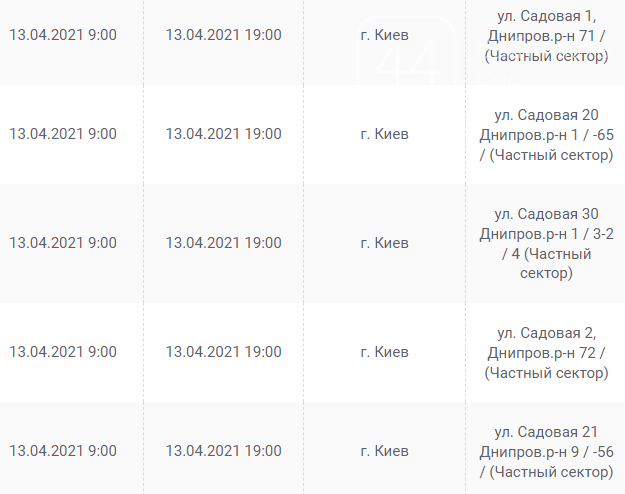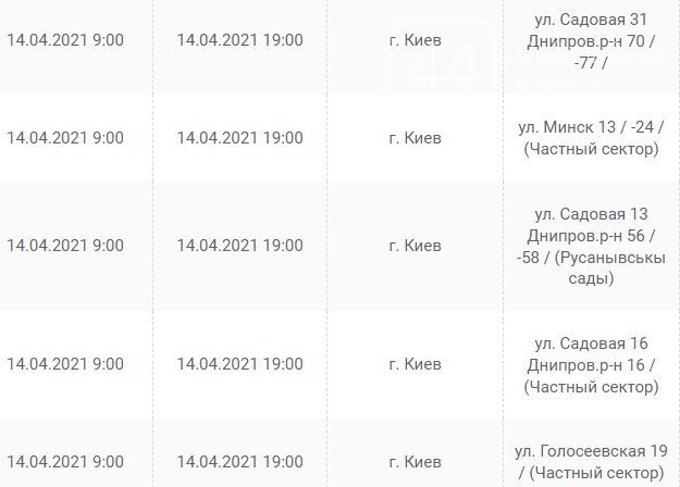 Киев, 12-18 апреля, график отключения электроэнергии: