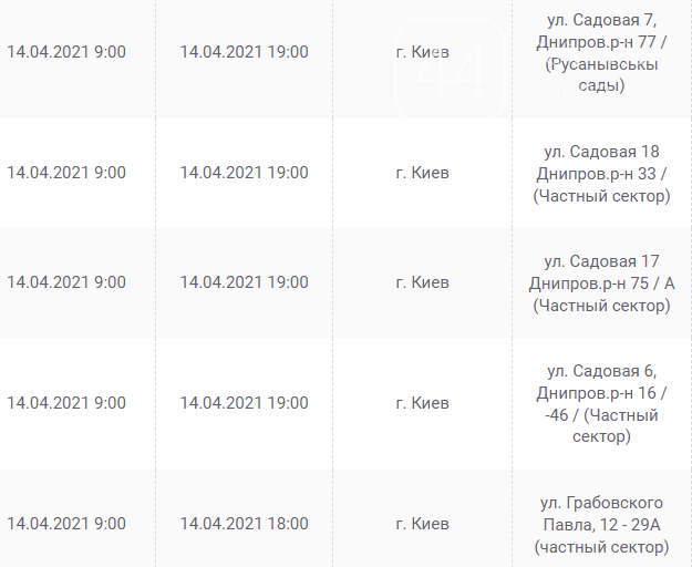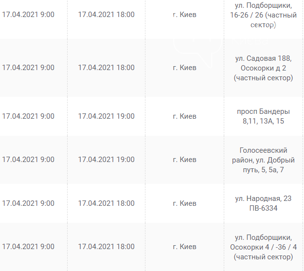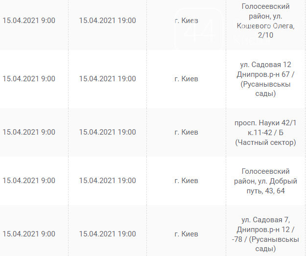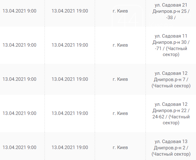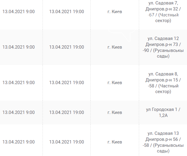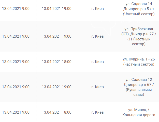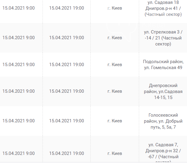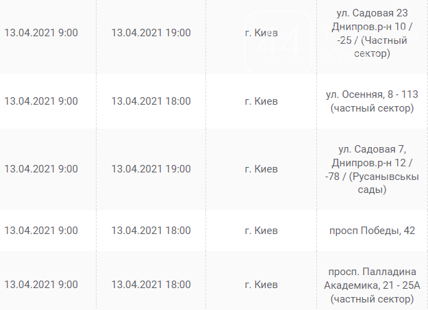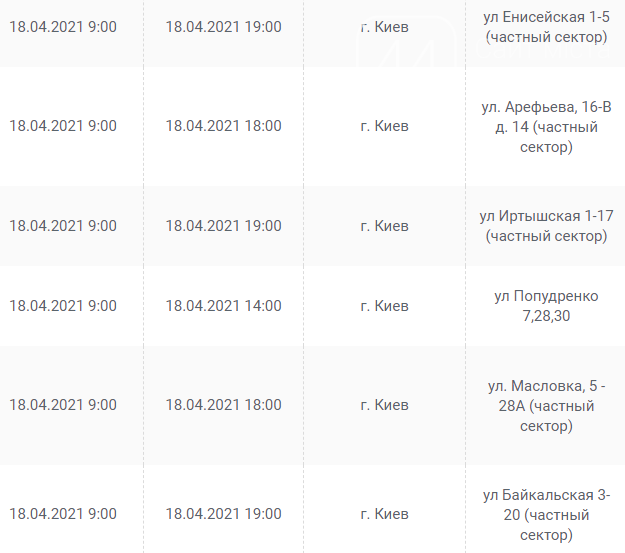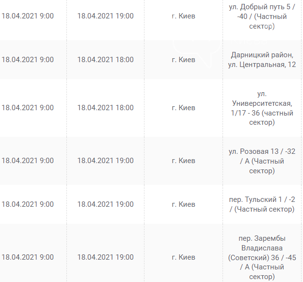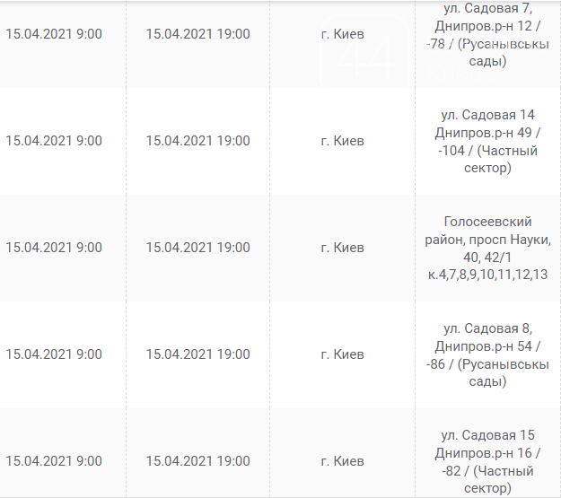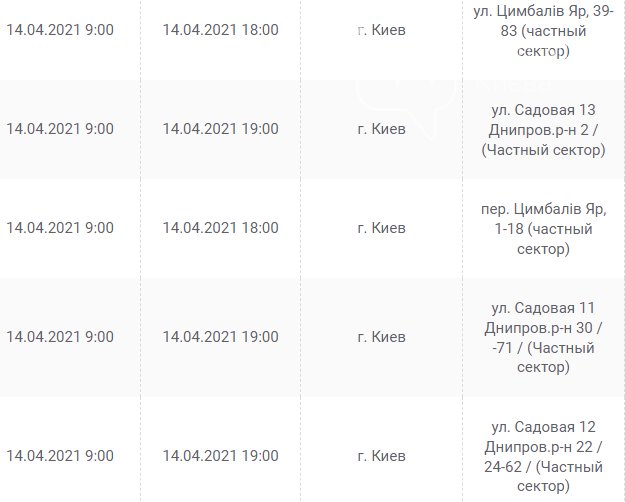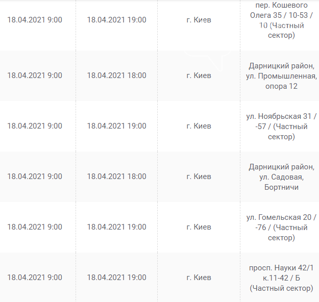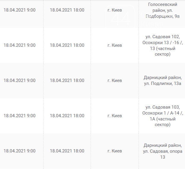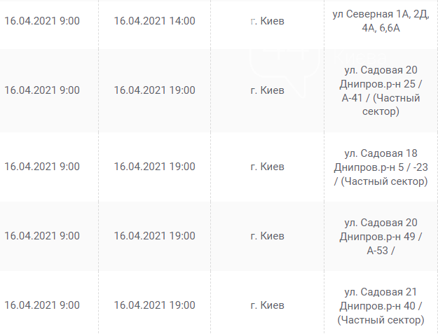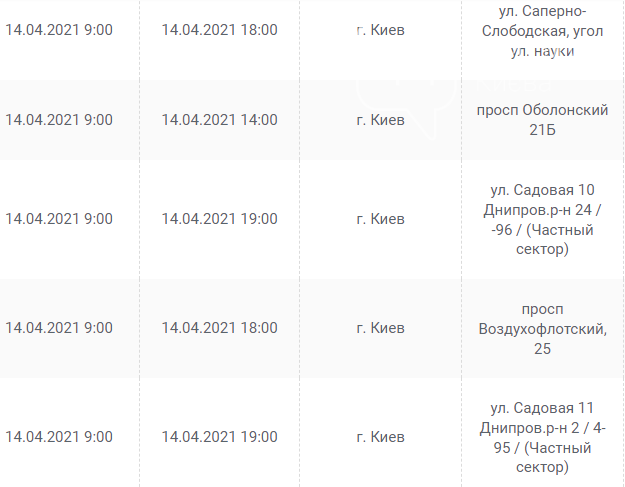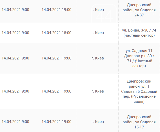 Киев, 12-18 апреля, график отключения электроэнергии: