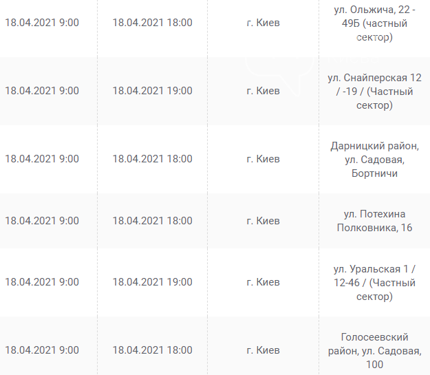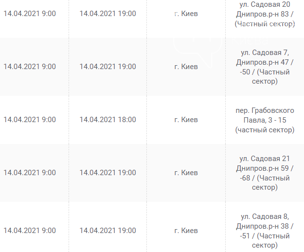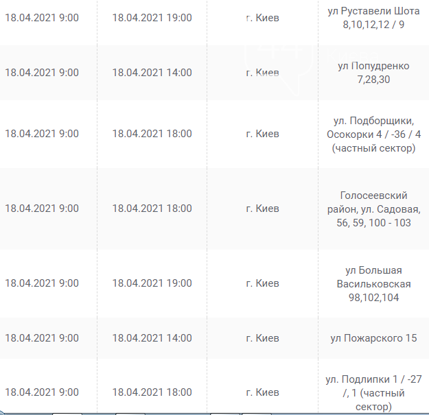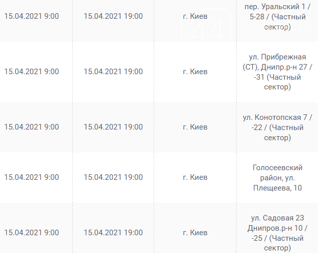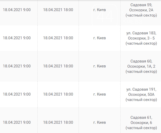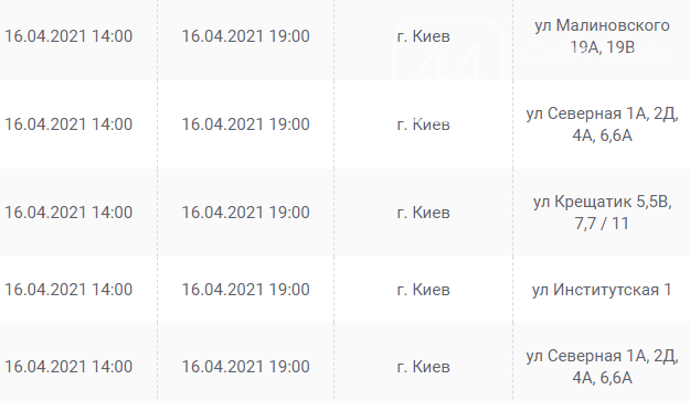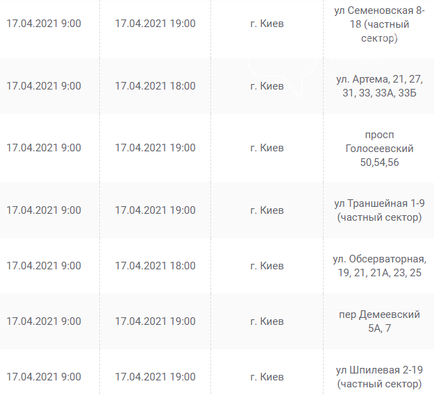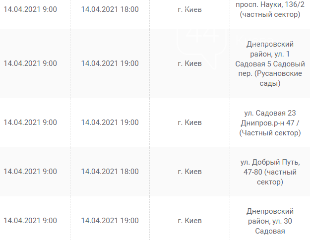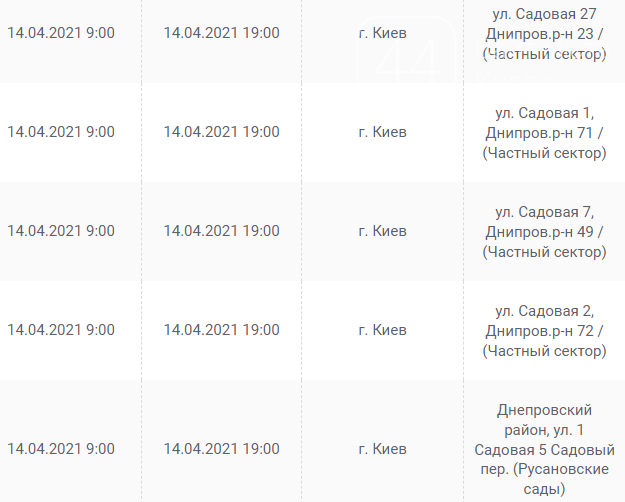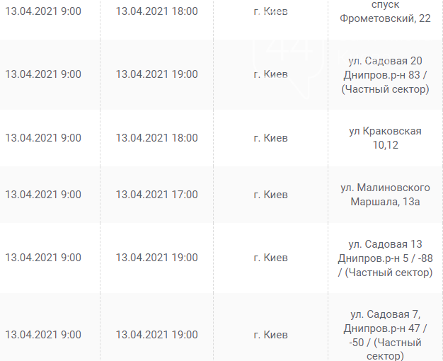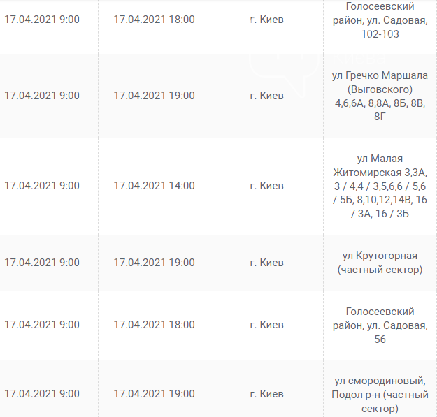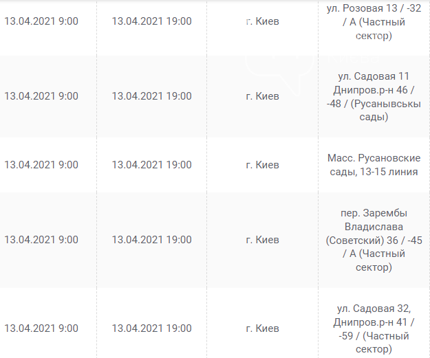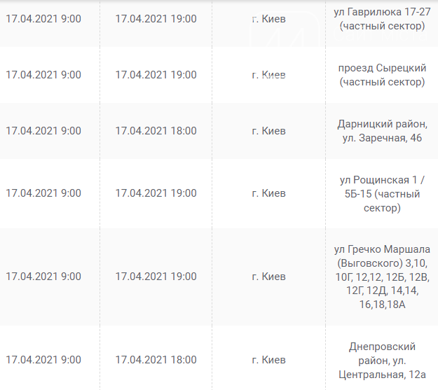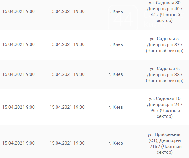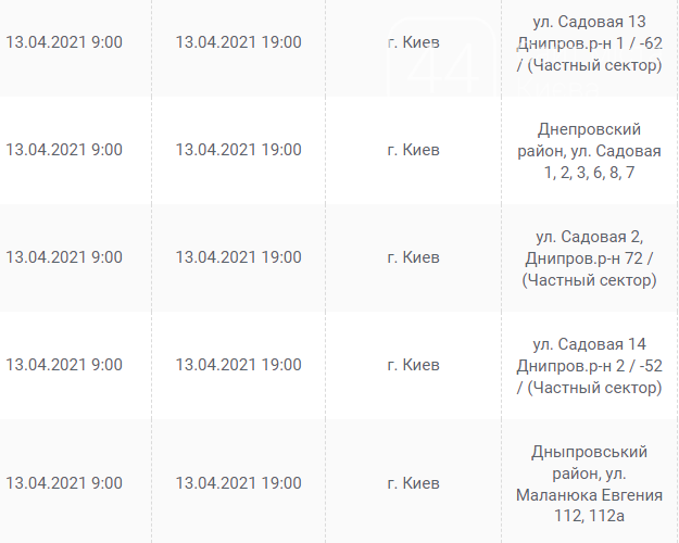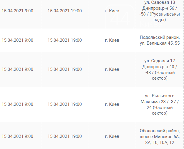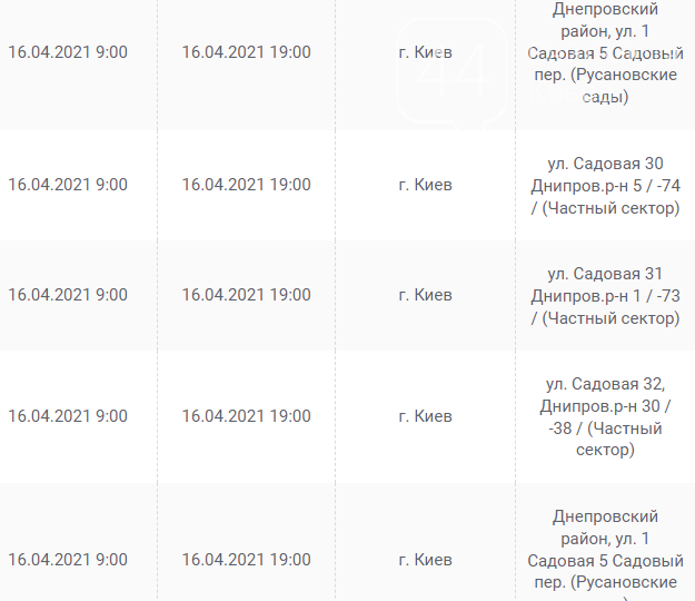 Киев, 12-18 апреля, график отключения электроэнергии: