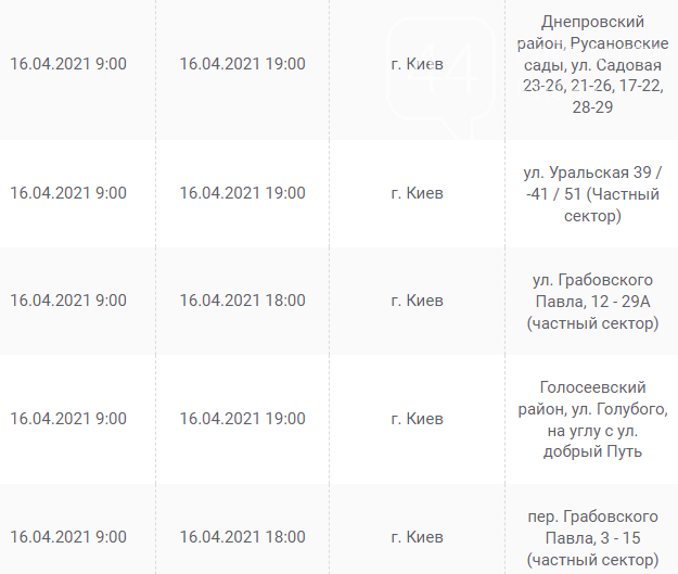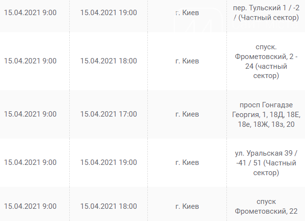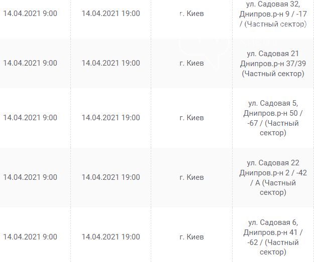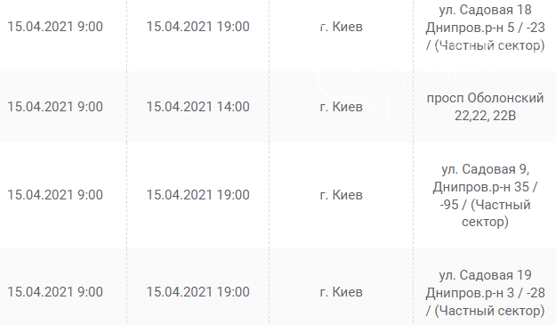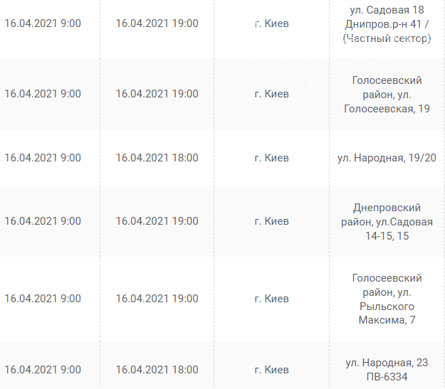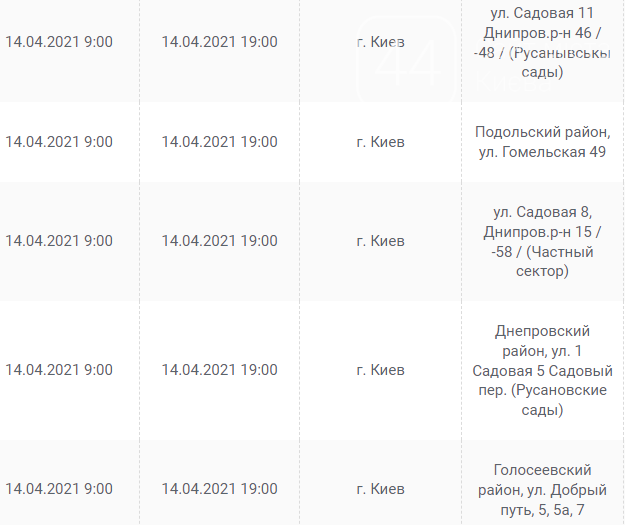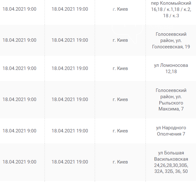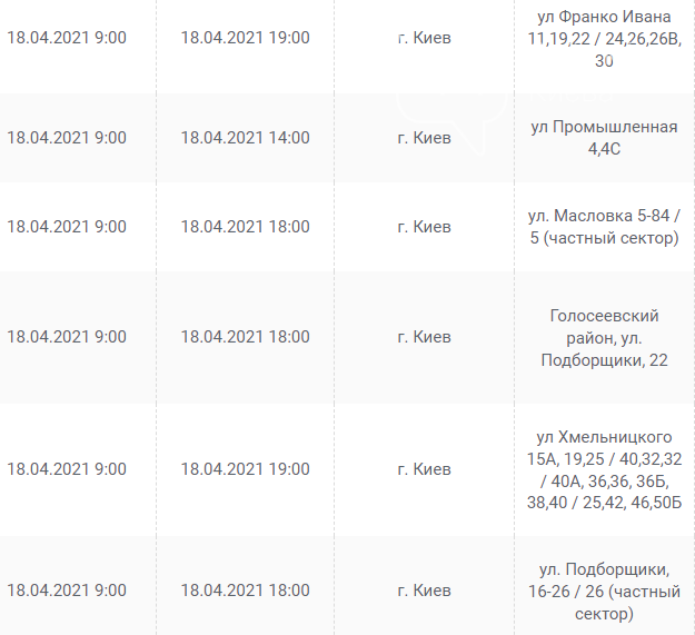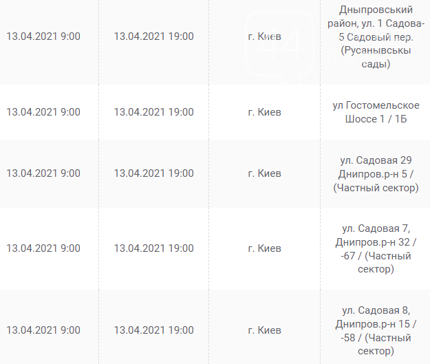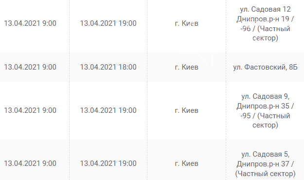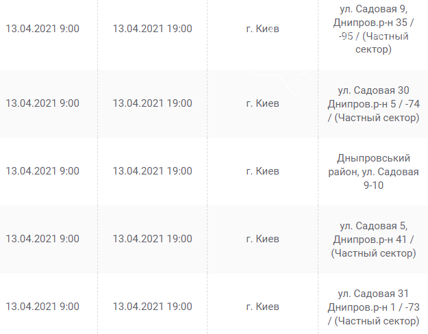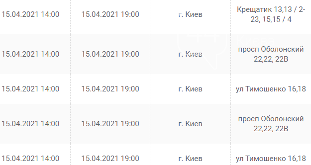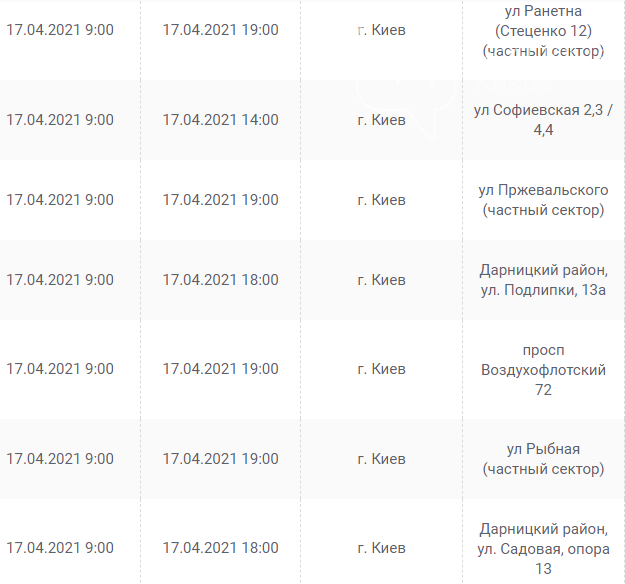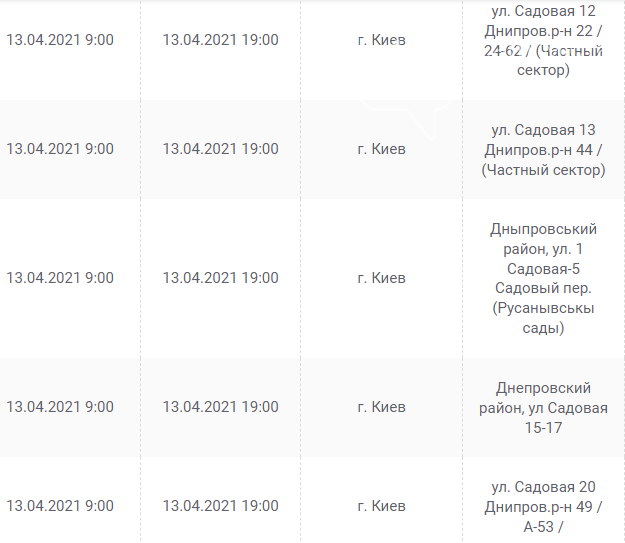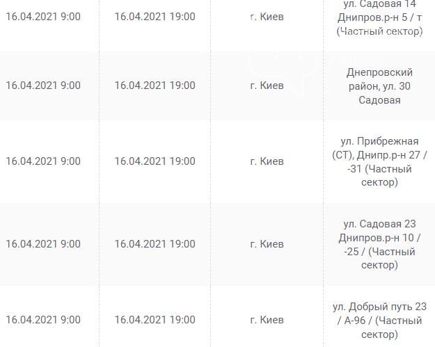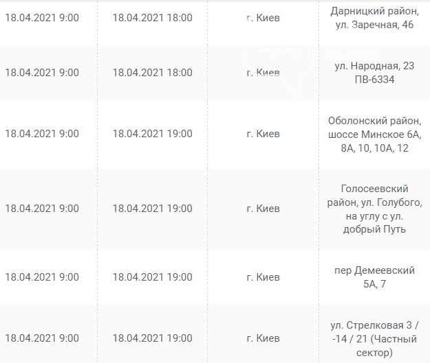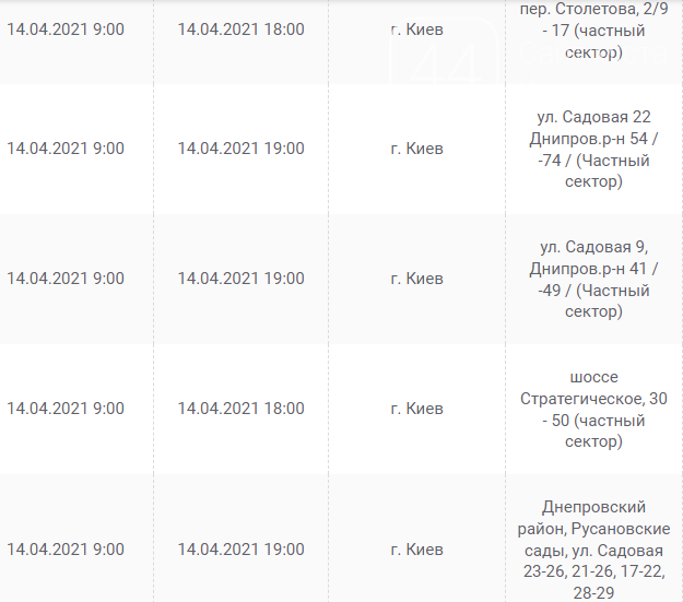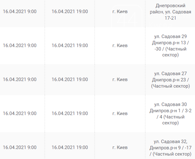 Киев, 12-18 апреля, график отключения электроэнергии: