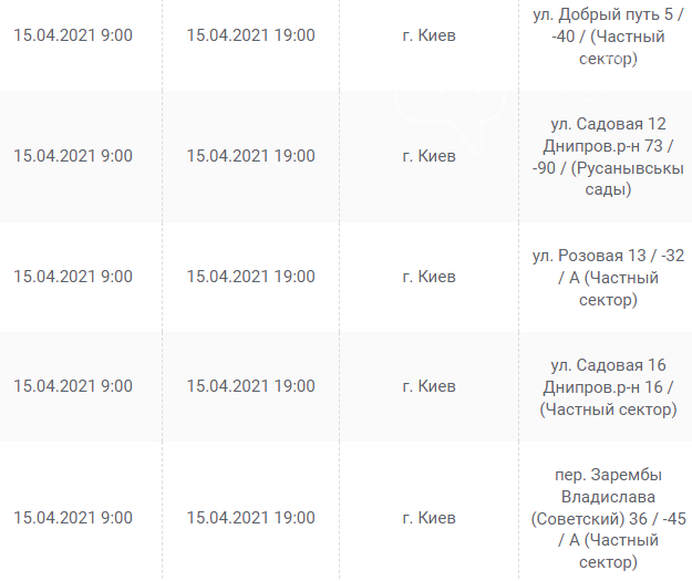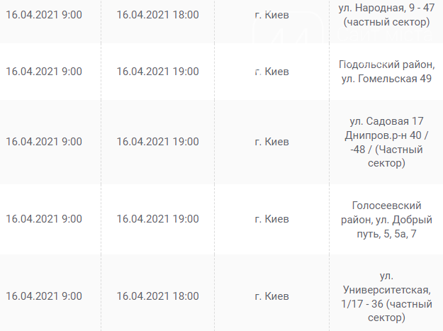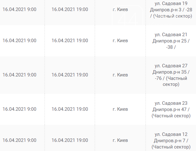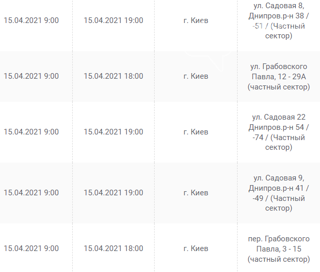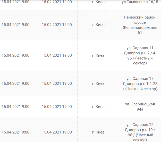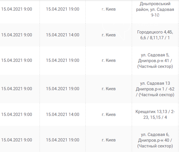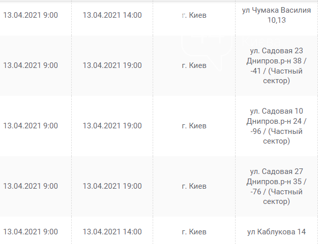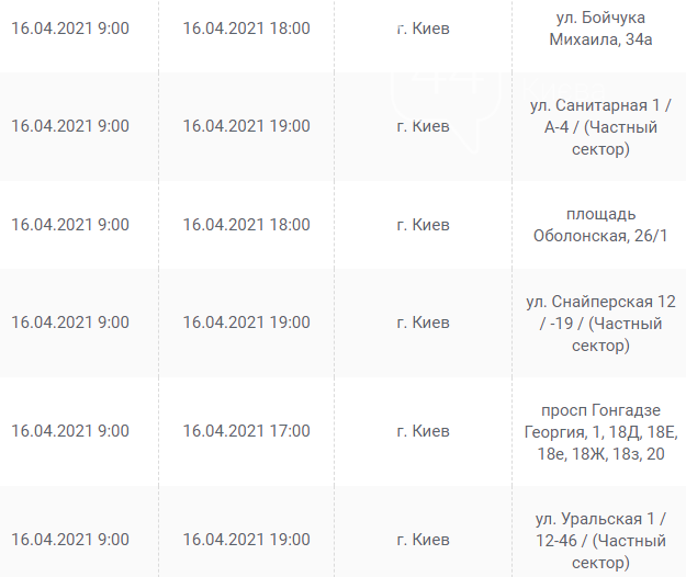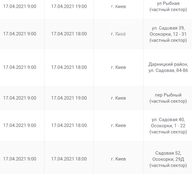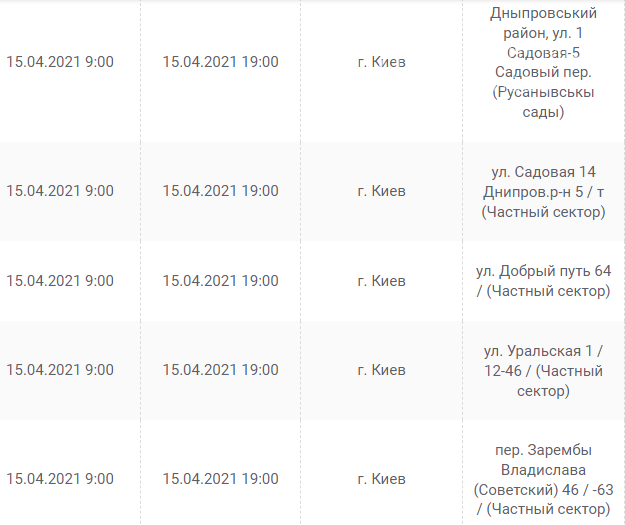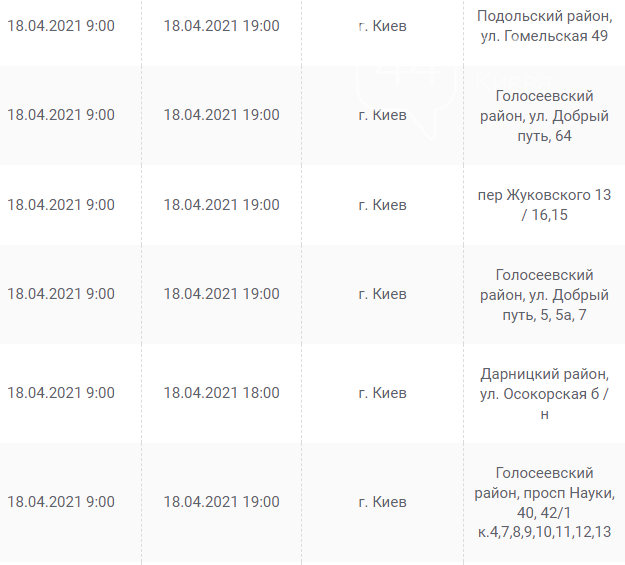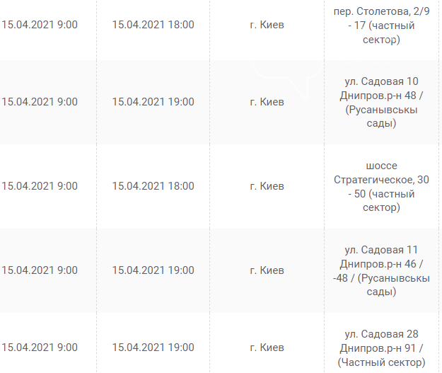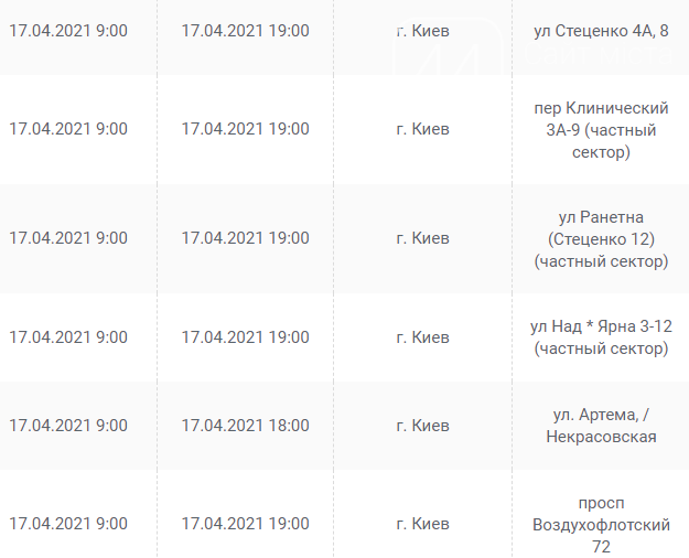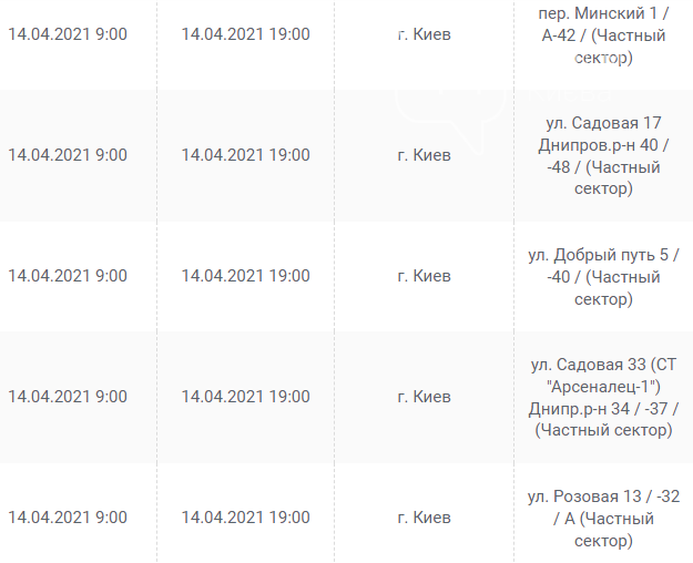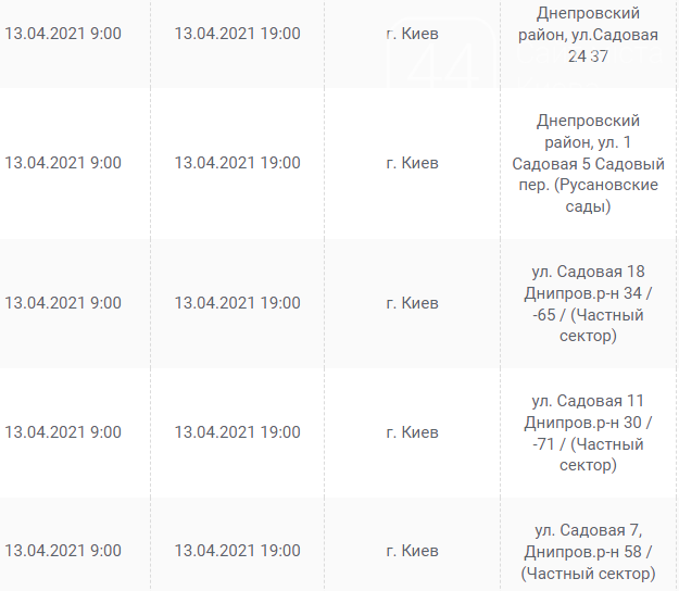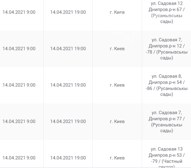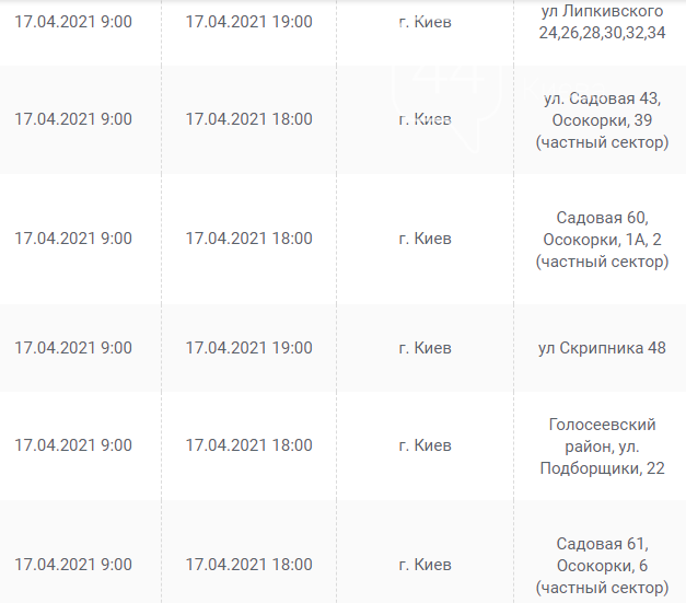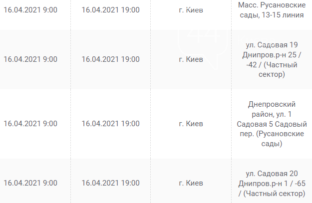 Киев, 12-18 апреля, график отключения электроэнергии: