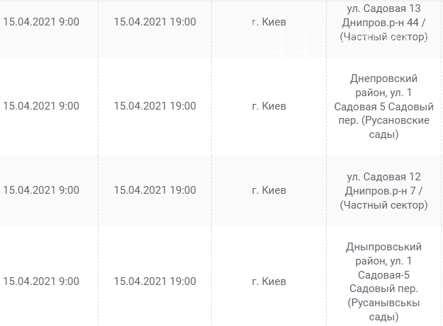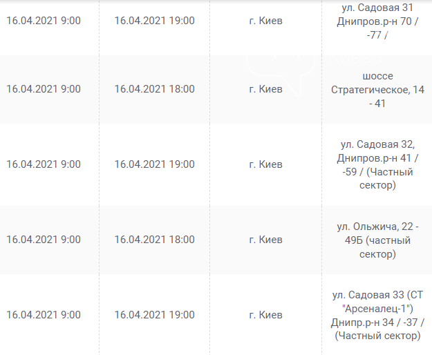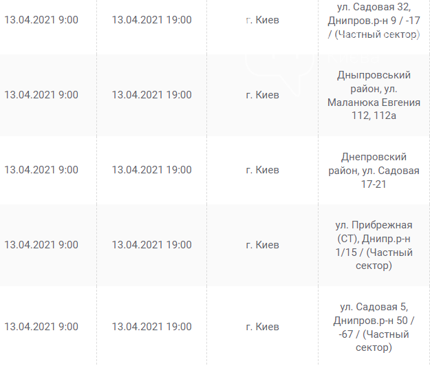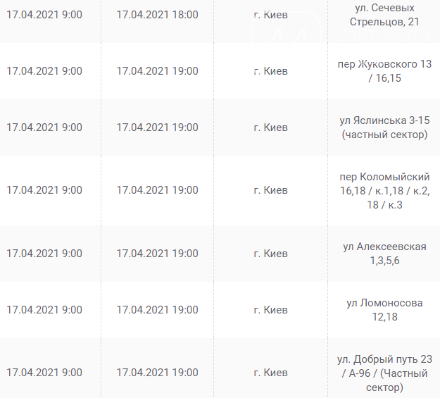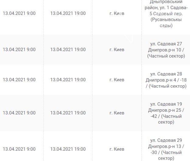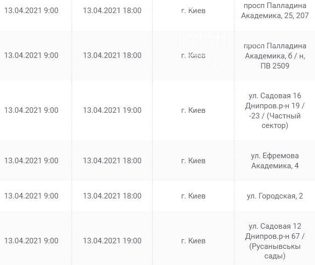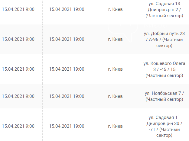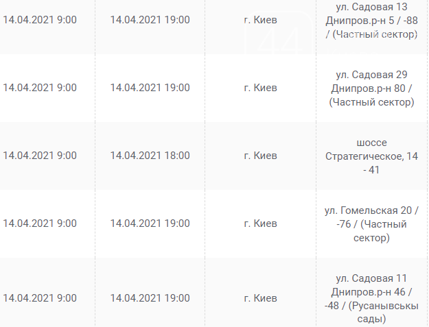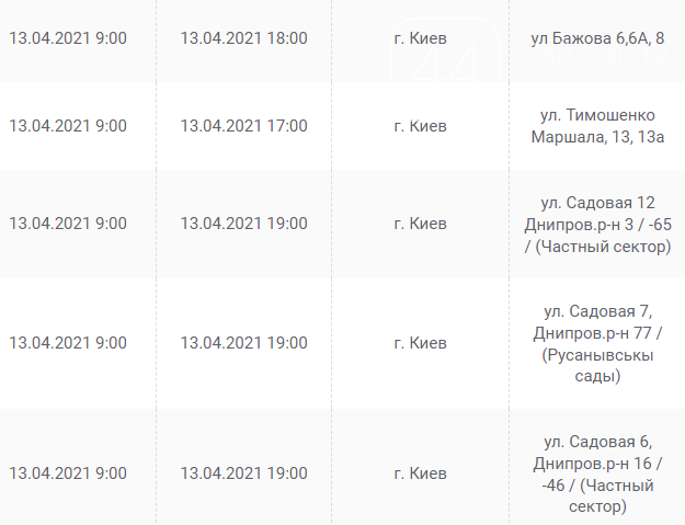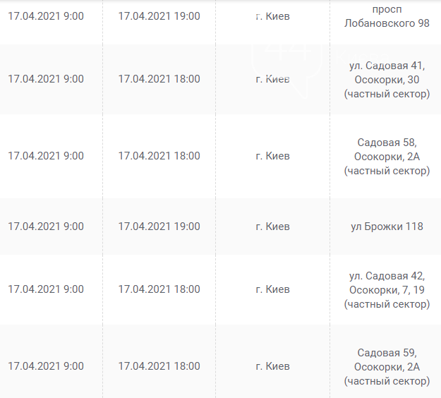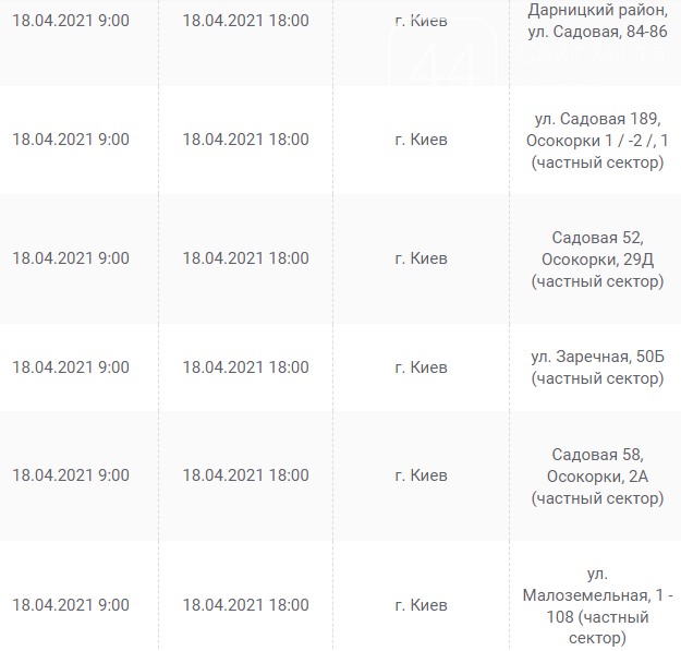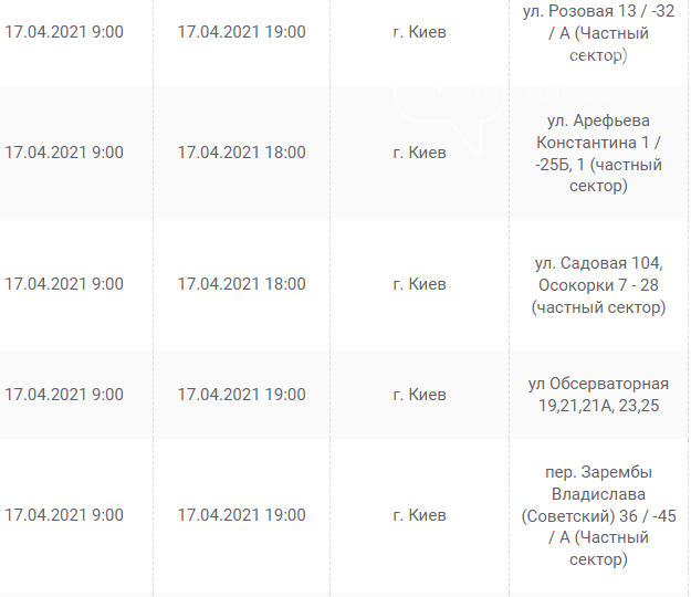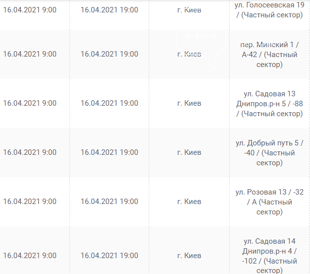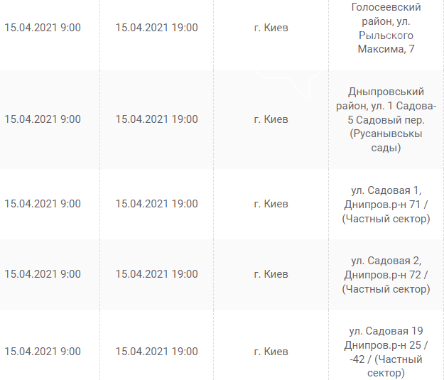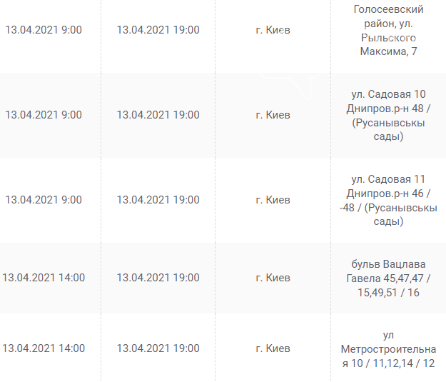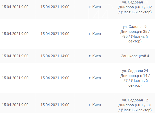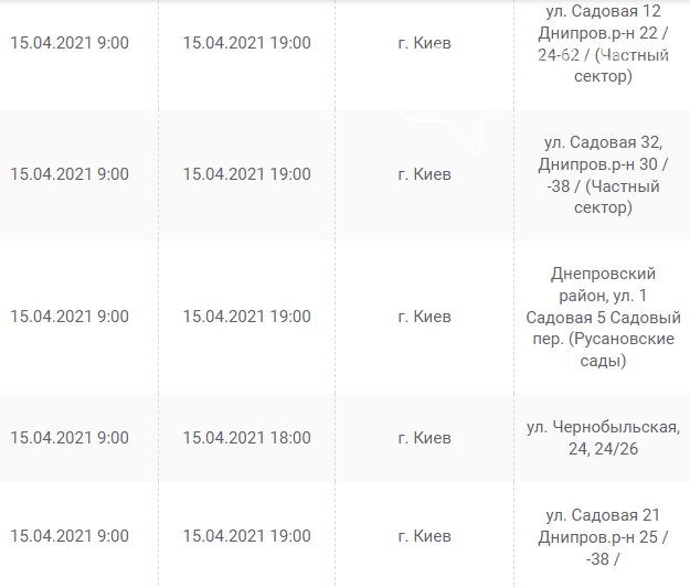 Киев, 12-18 апреля, график отключения электроэнергии: