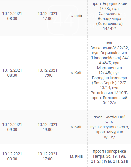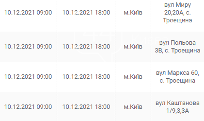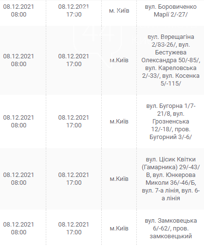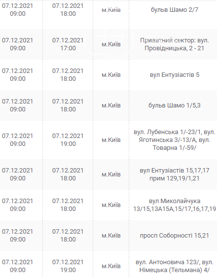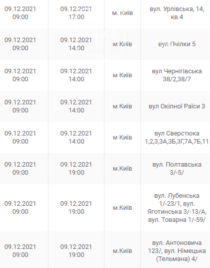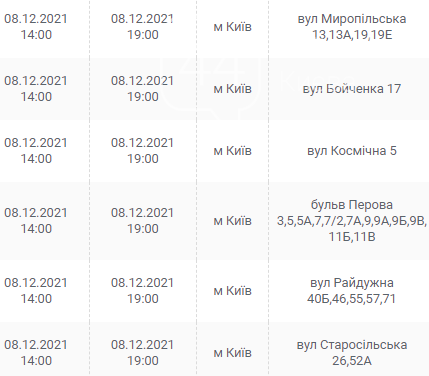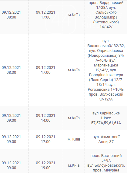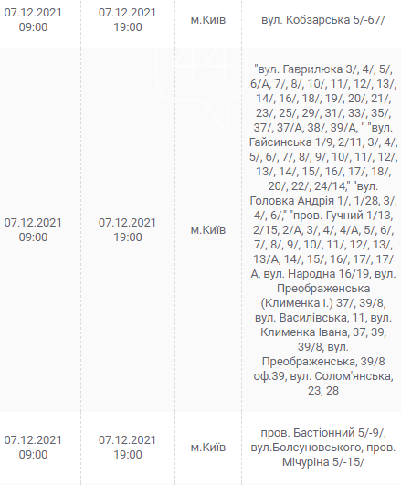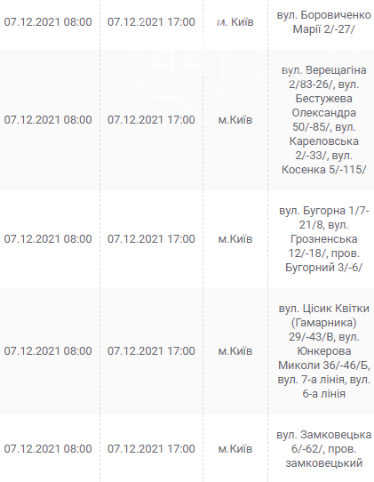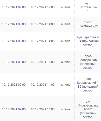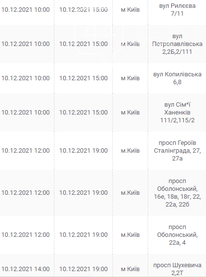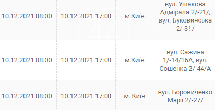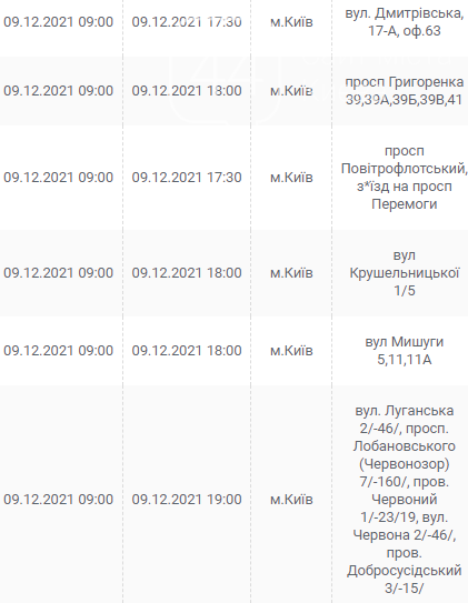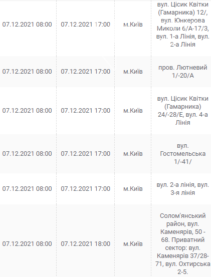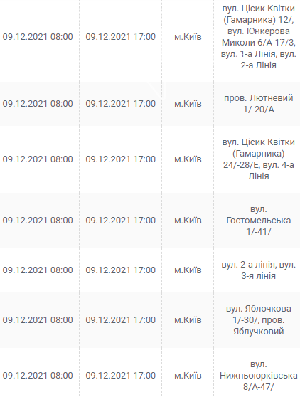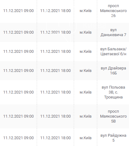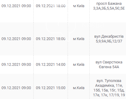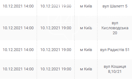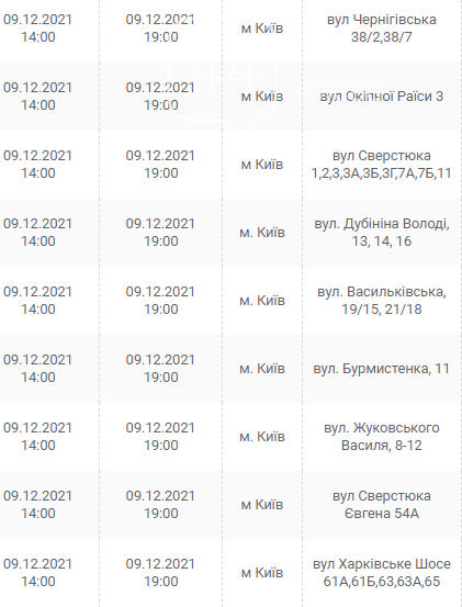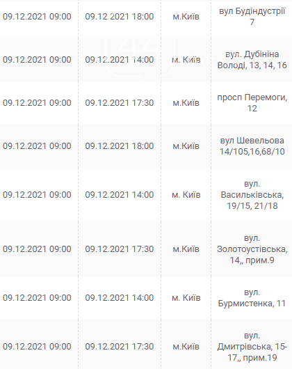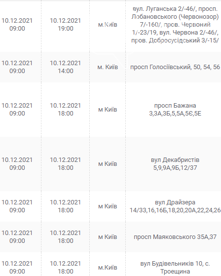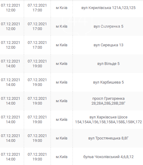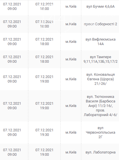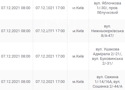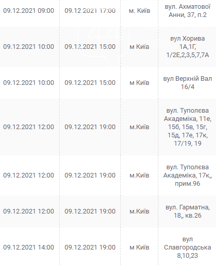 Киев, 7 – 12 декабря, график отключения электроэнергии: