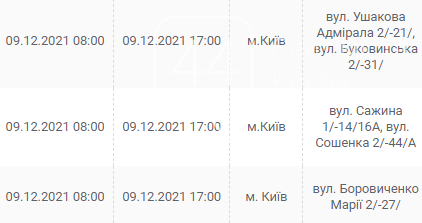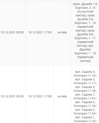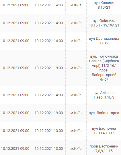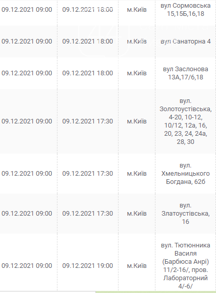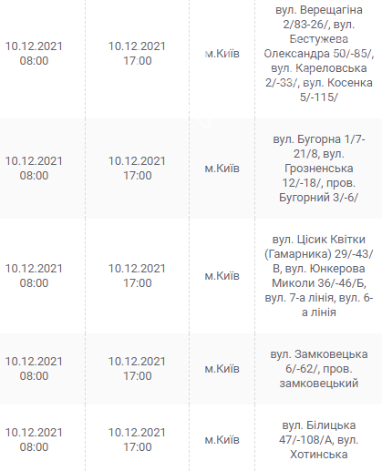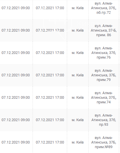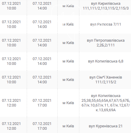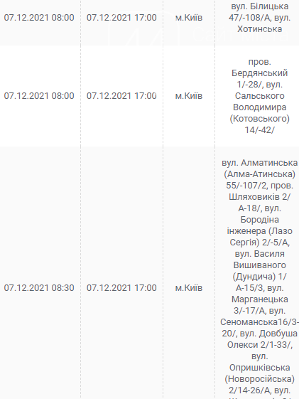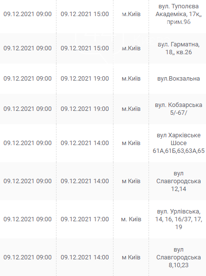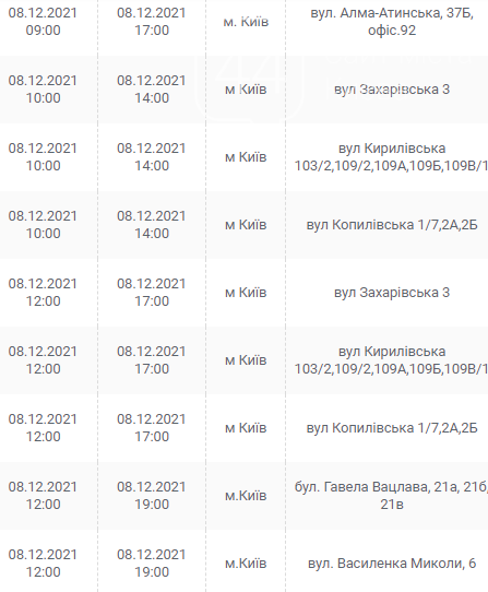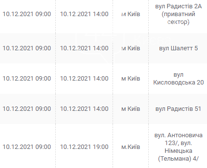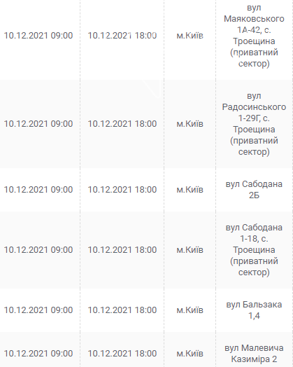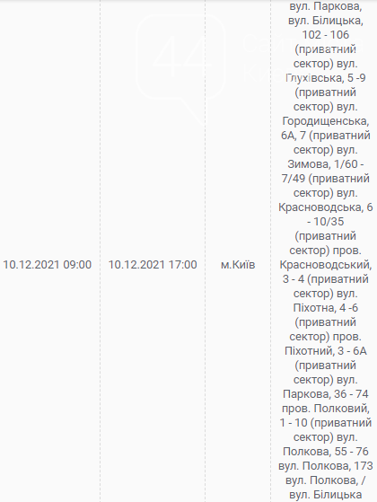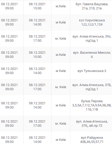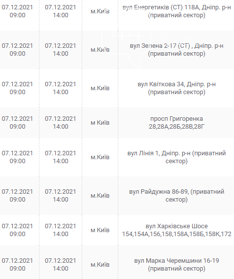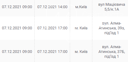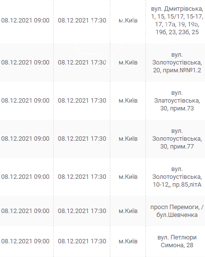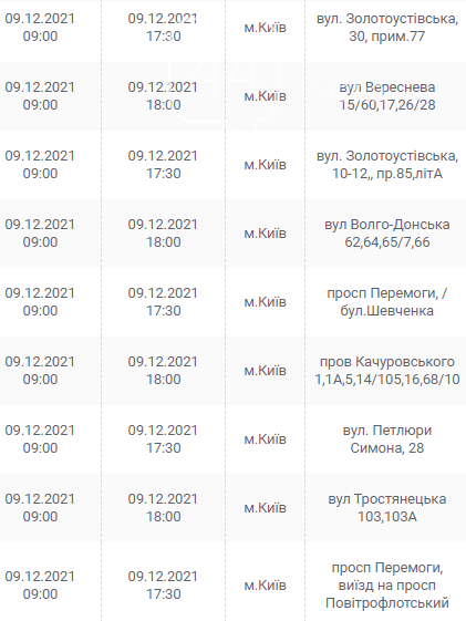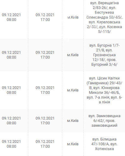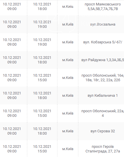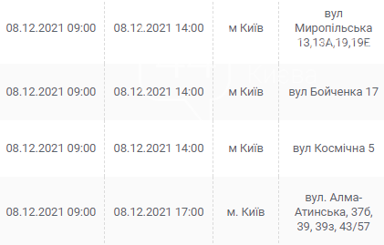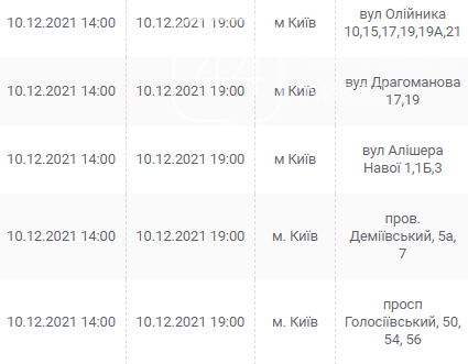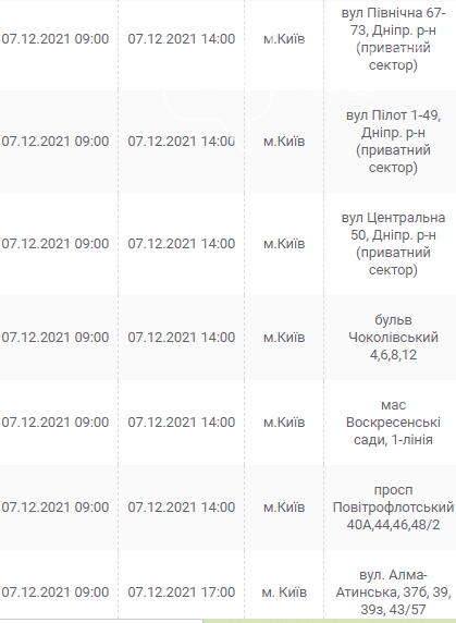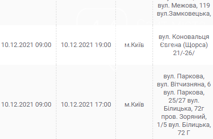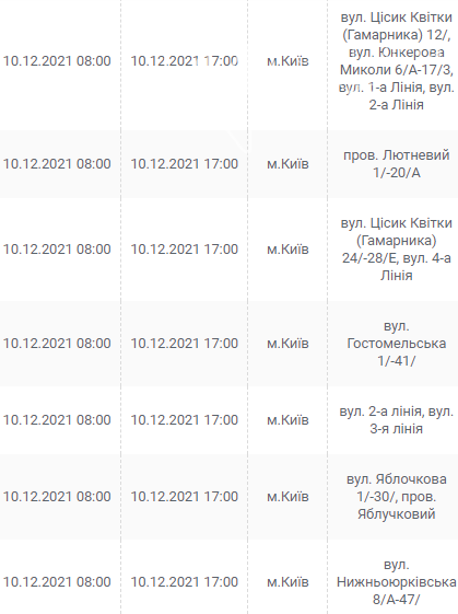 Киев, 7 – 12 декабря, график отключения электроэнергии: