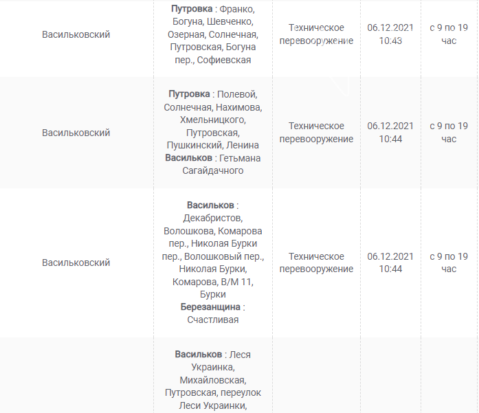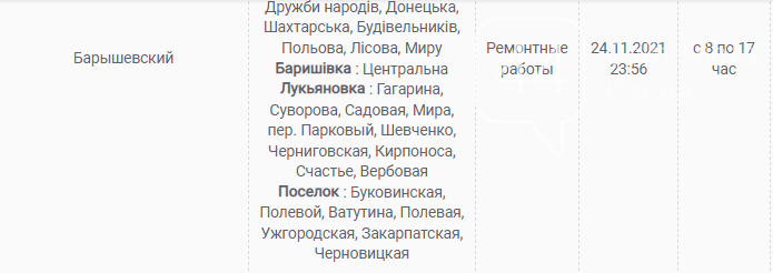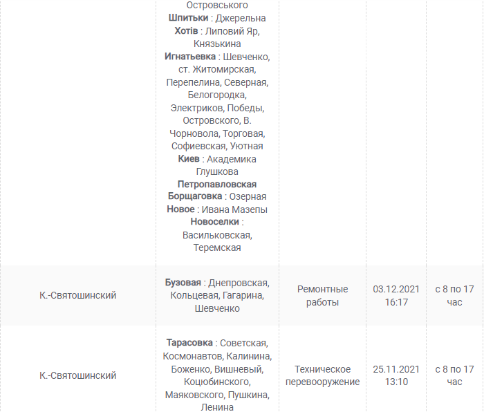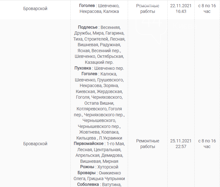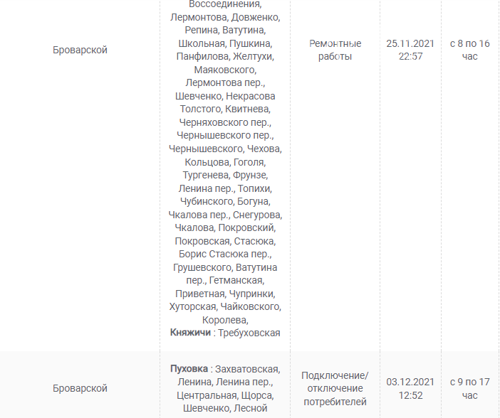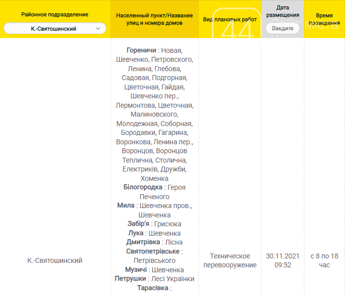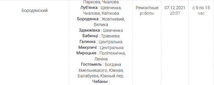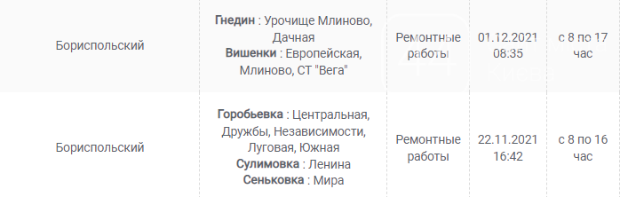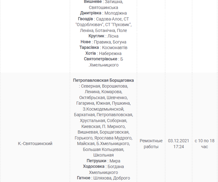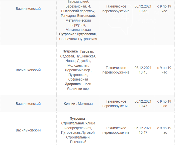 Киевская область, 10 декабря, график отключения электроэнергии: