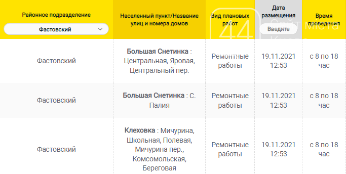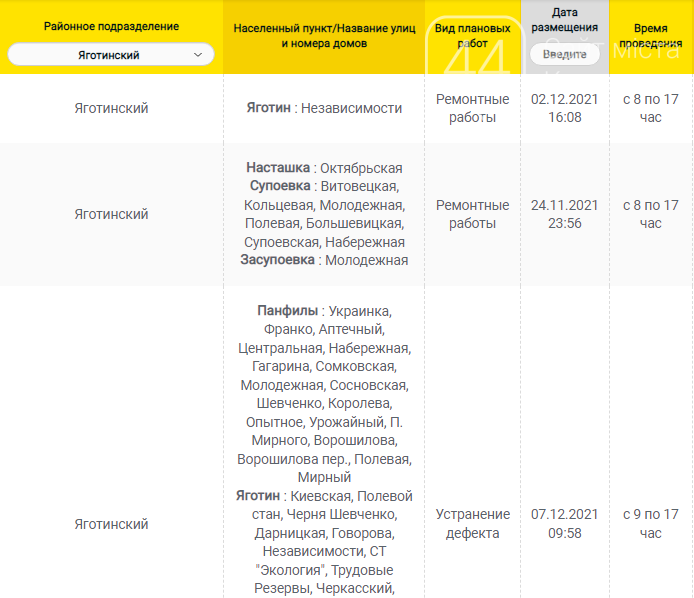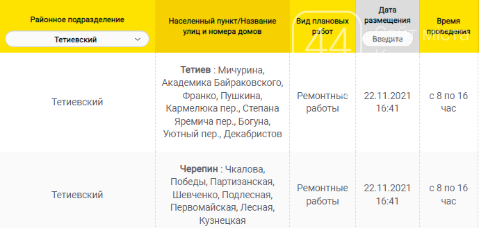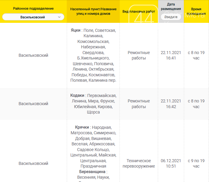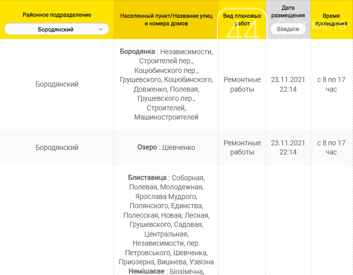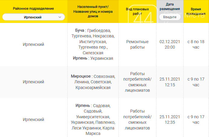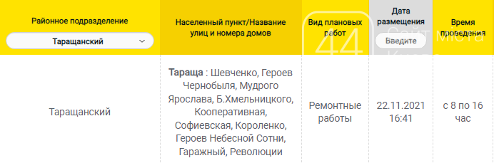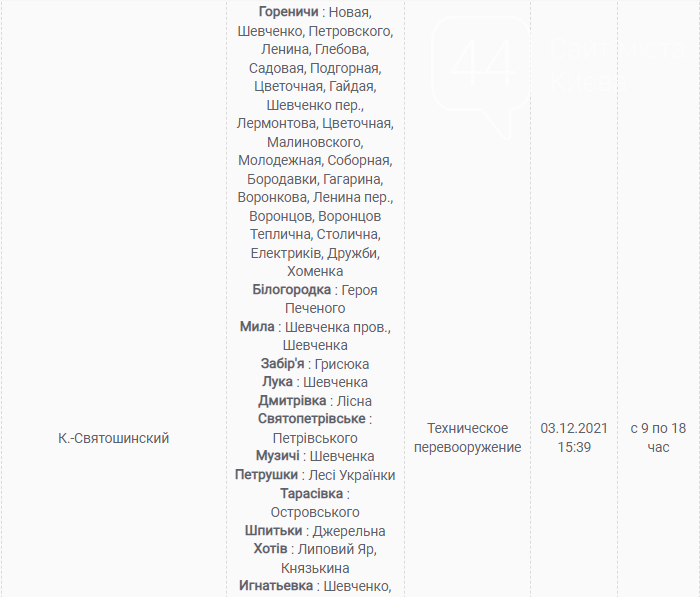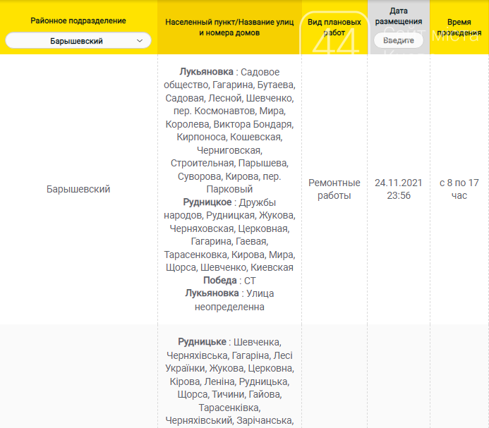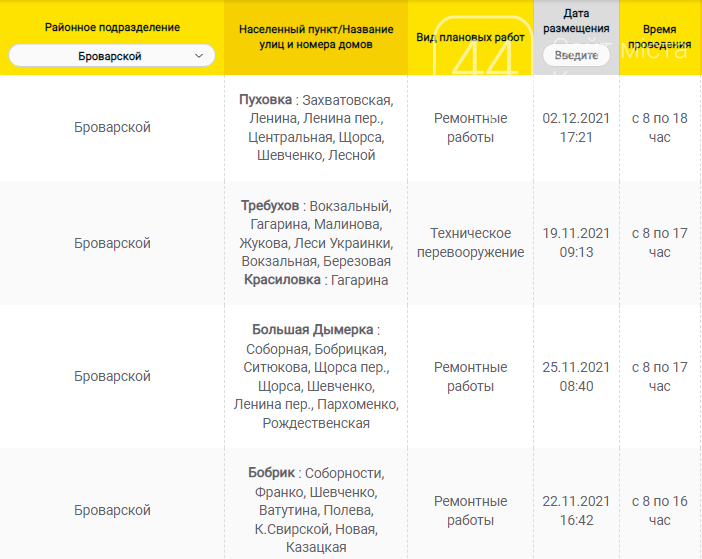 Киевская область, 10 декабря, график отключения электроэнергии: