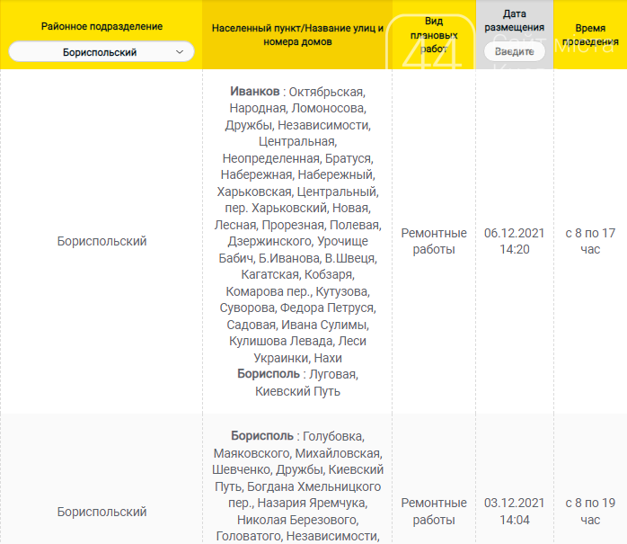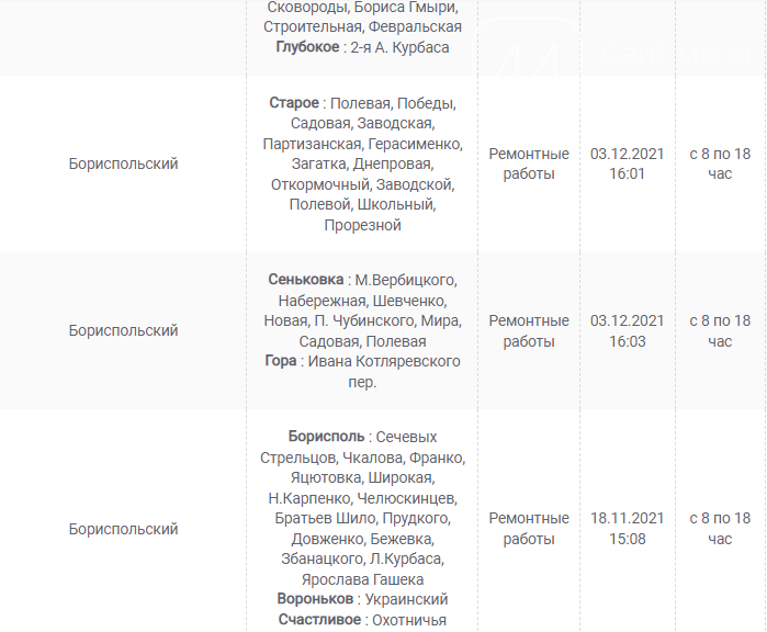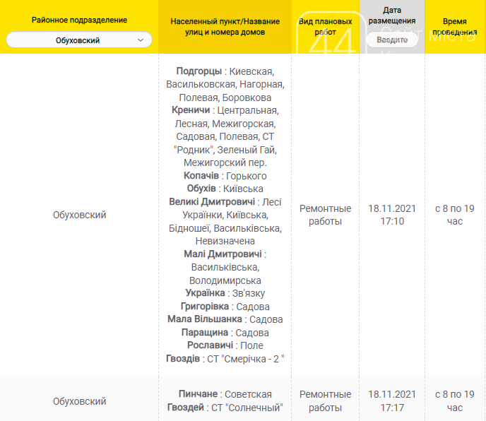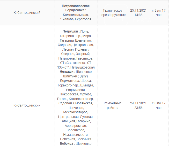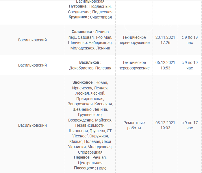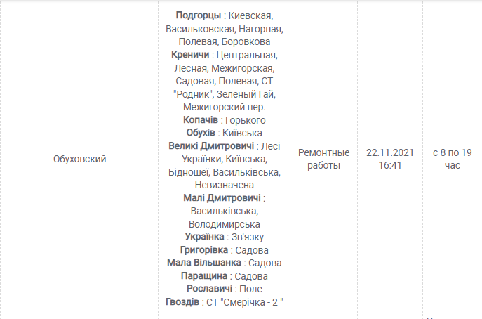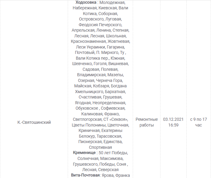 Какие населенные пункты Киевщины завтра останутся без света: график на 10 декабря