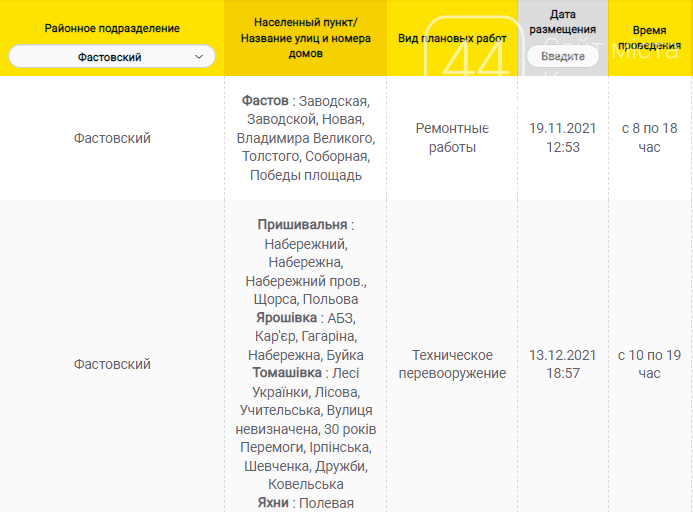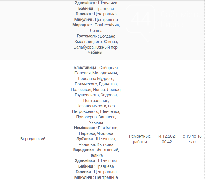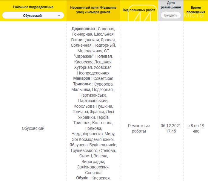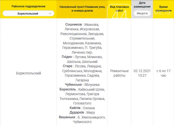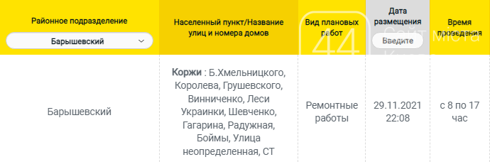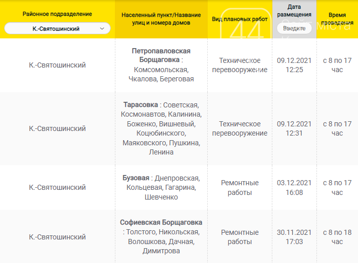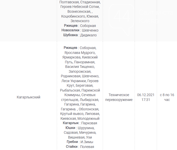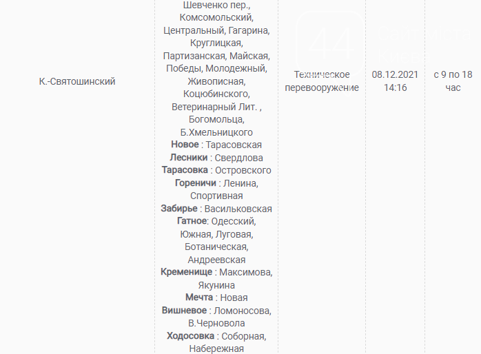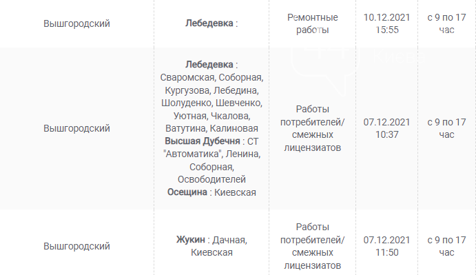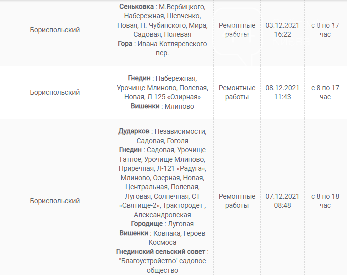 Киевская область, 16 декабря, график отключения электроэнергии: