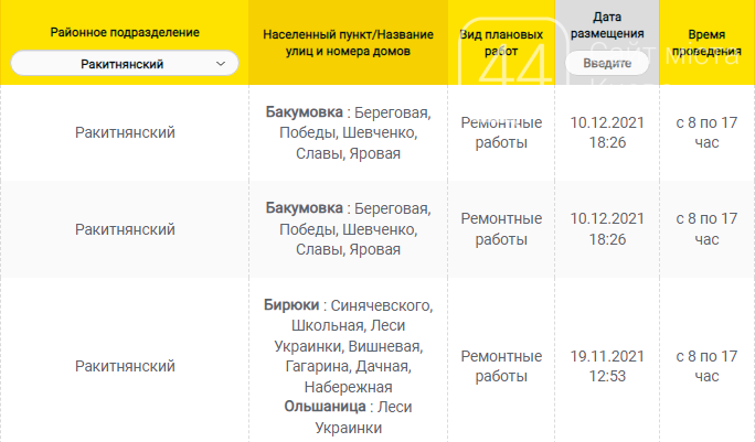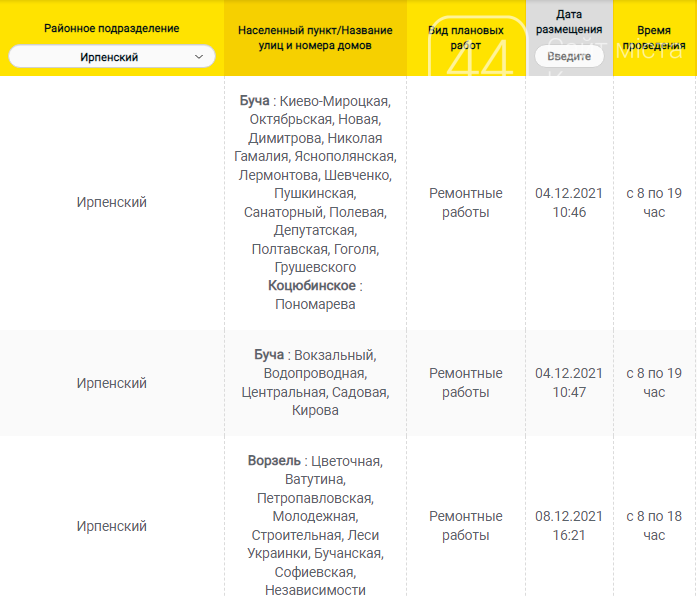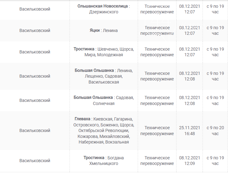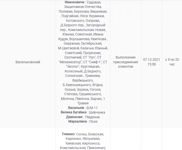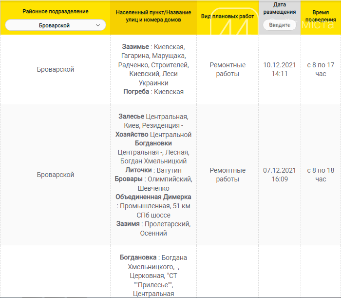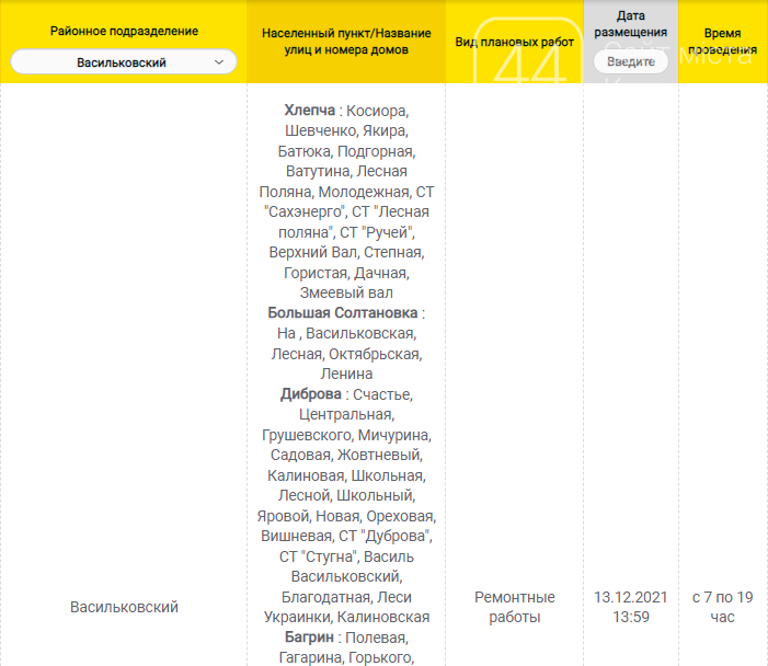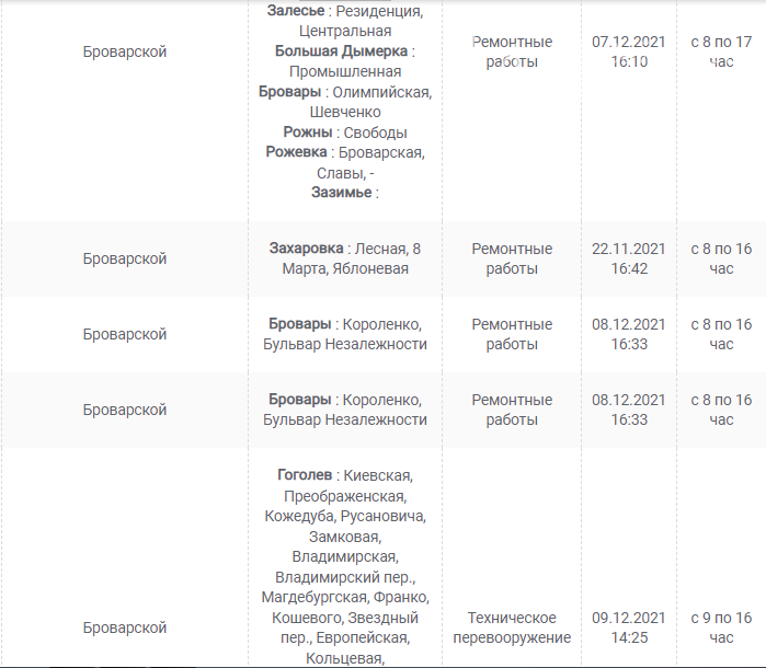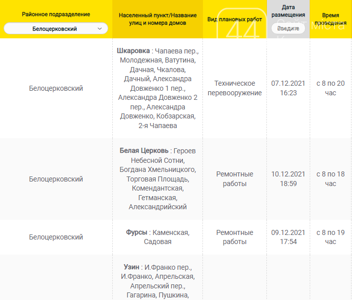 Киевская область, 16 декабря, график отключения электроэнергии: