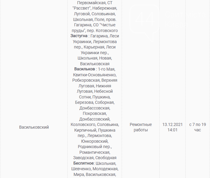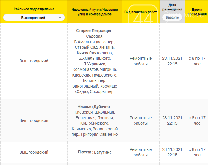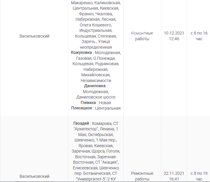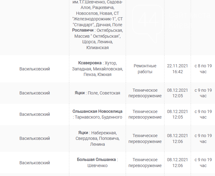 Завтра, 16 декабря, во многих населенных пунктах Киевщины приостановят подачу электроэнергии по причине проведения ремонтно-восстановительных работ на подстанциях и воздушных линиях.