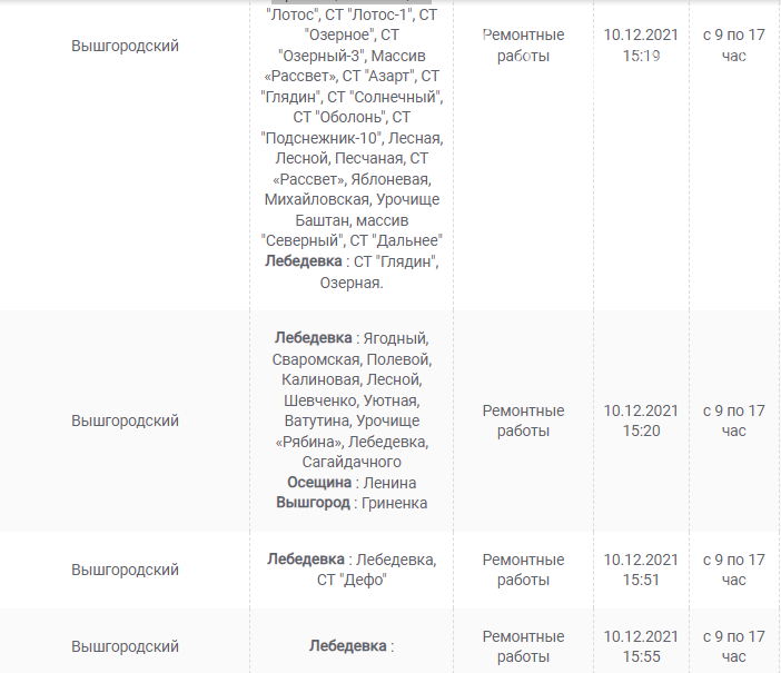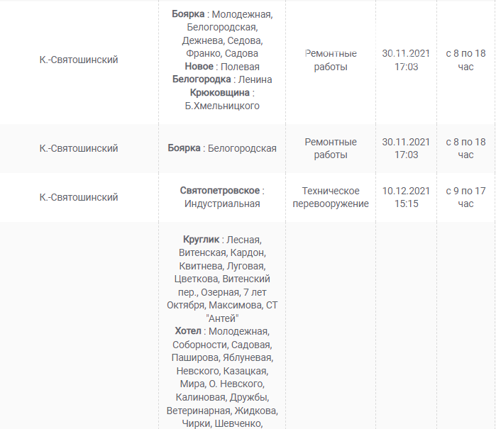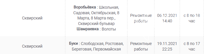 Обесточат жилые дома и другие объекты частной и муниципальной собственности. Продолжительность отключений составит несколько часов. Чтобы узнать о том, будет ли завтра свет в вашем доме или офисе, ознакомьтесь, пожалуйста, с графиком.