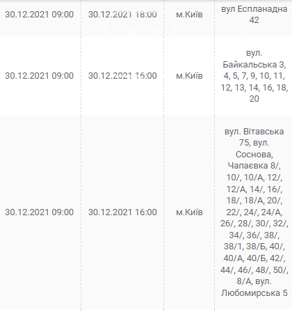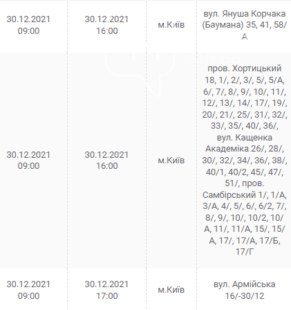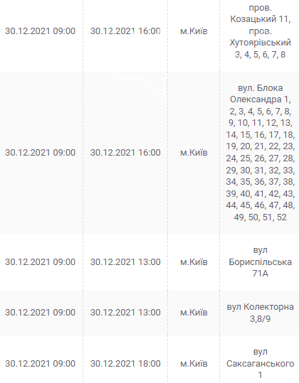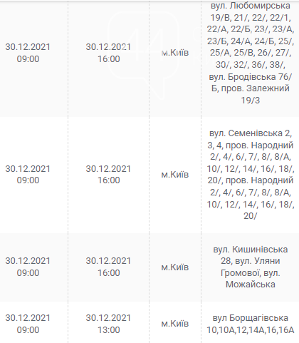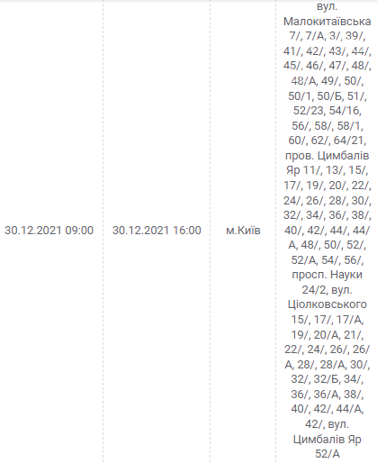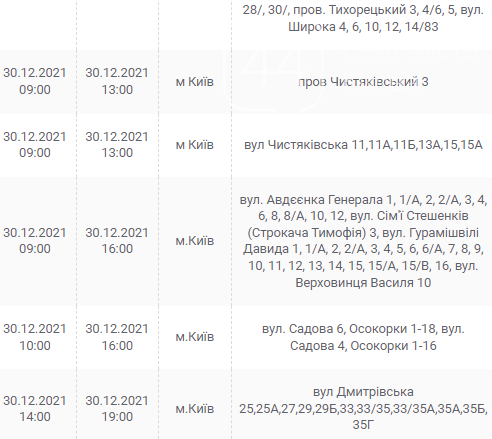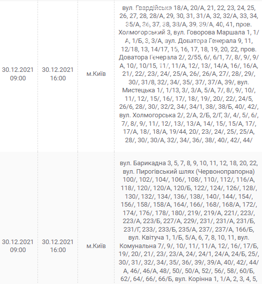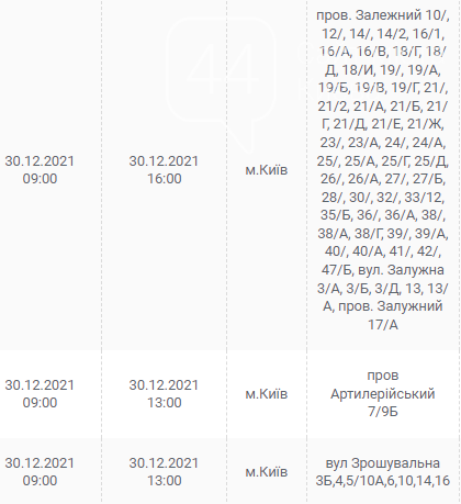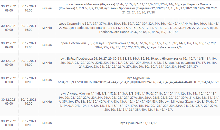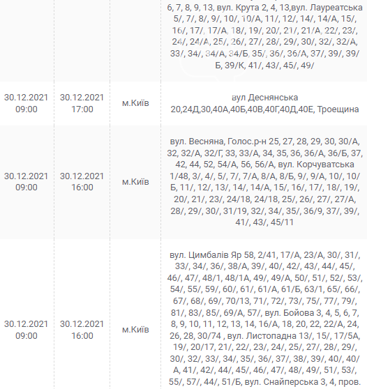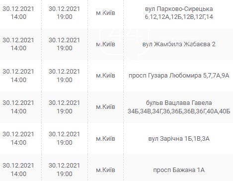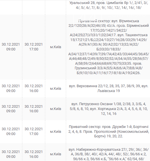 Киев, 30 декабря, график отключения электроэнергии: