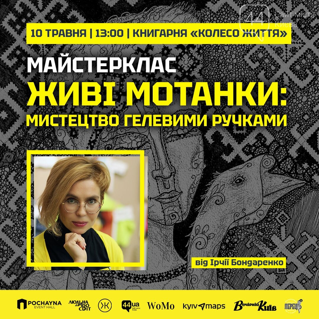 «Створювання графічної мотанки перетворюється на розмову, творчий пошук, певною мірою — арттерапевтичне зцілення від тривоги й напруження. Маю надію, кожен, хто прийде 10 травня, відчує себе митцем і налаштується на "танок ліній", в яких можна знайти відповіді на те, що хвилює, те, що невисловлене, що спочиває ще всередині нас», — ділиться Ірчія Бондаренко, авторка майстеркласу.