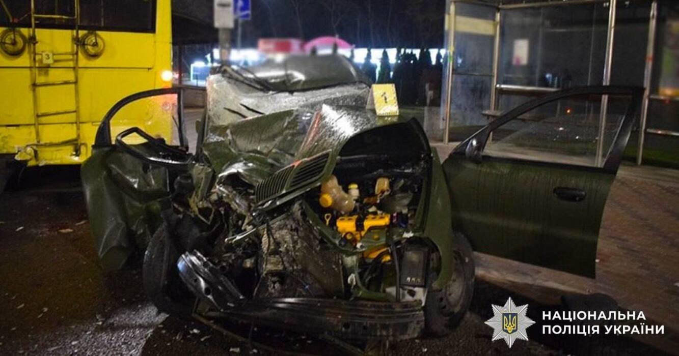 Водій у стані алкогольного сп’яніння врізався у тролейбус та травмував двох пасажирів. Про це повідомляє поліція Києва.