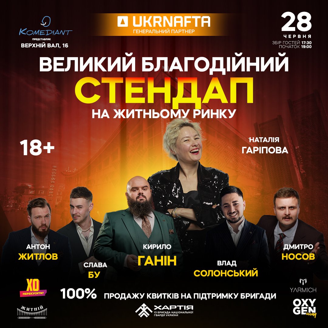 Програма і квитки на великий благодійний стендап на Житньому: https://kontramarka.ua/uk/velikij-blagodijnij-stendap-106518.html
