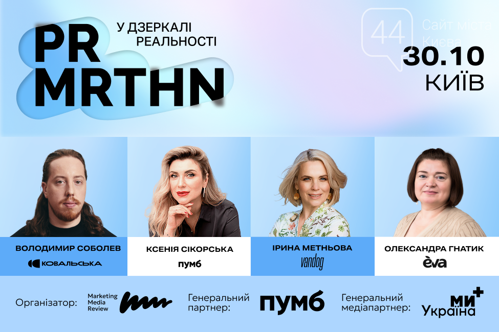 30 жовтня 2025 року понад 300 комунікаційників і маркетологів та 30 спікерів з усієї України візьмуть участь у PR-марафоні «У дзеркалі реальності». У програмі: 4 панельні дискусії, кейси від ПУМБ, «Ковальська», Eva, Bolt, корпорації «Біосфера» та інших топових компаній, церемонія нагородження Конкурсу PR-кейсів. Учасники обговорять інструменти побудови довіри, прозорості та ефективної комунікації, а також досвід адаптації брендів до швидких змін суспільних настроїв.