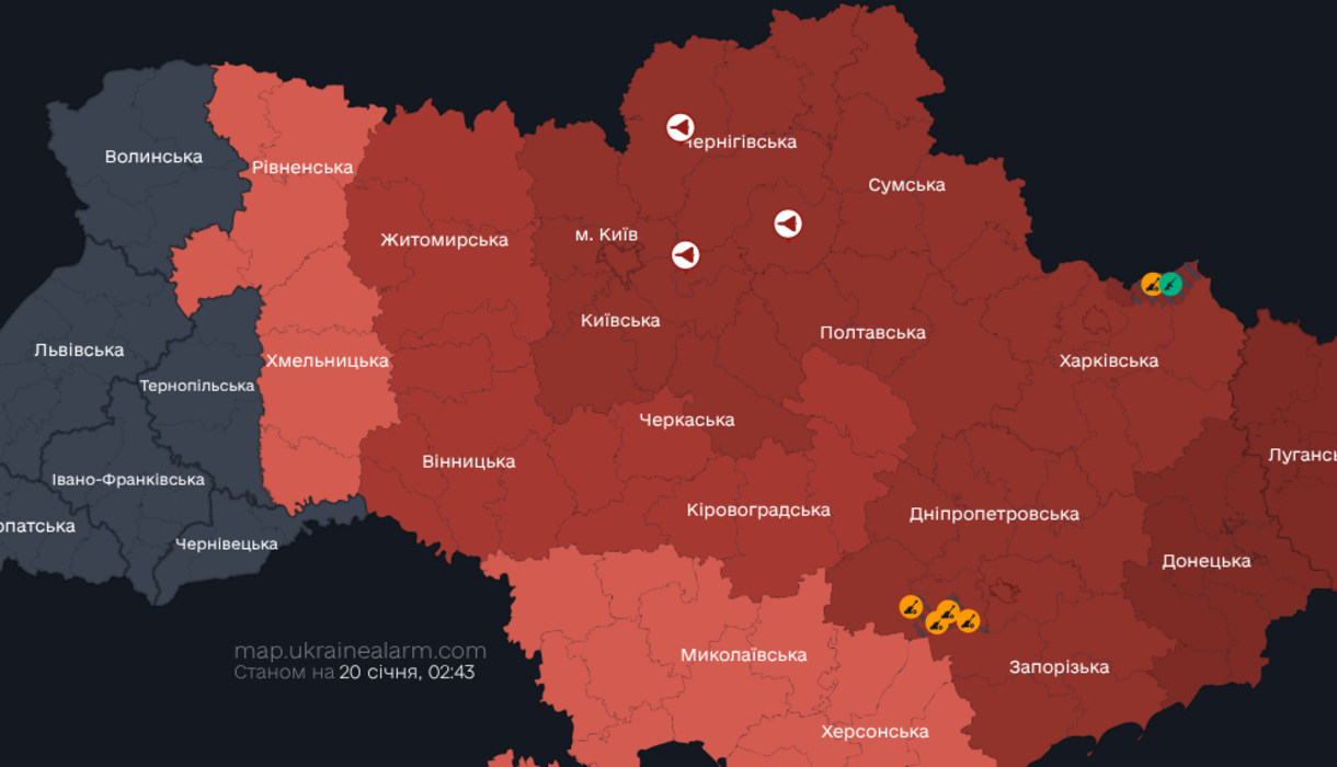Уночі, 20 січня, ворог здійснив комбіновану атаку в напрямку Києва. Про це повідомляють керівник ОВА Тимур Ткаченко та Повітряні сили ЗС України.