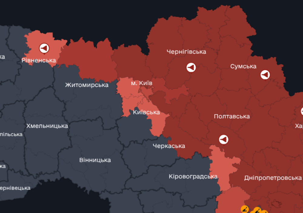 У Києві оголошена повітряна тривога. Загроза в небі виникла о 01:02.