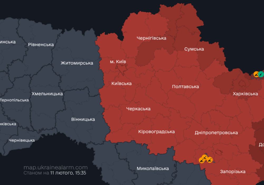 Удень, 11 лютого, ворог повторно розпочав повітряну атаку. Про це повідомляють КМВА та Повітряні сили ЗС України.