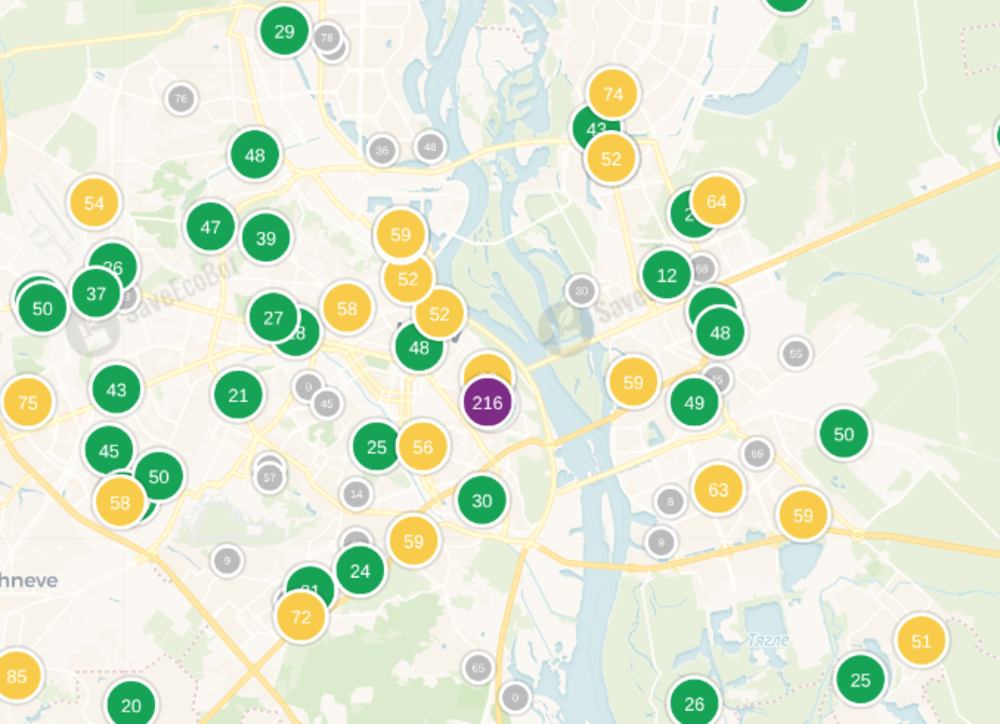 Сьогодні в Києві переважно хмарно. Окрім цього, в самому центрі міста з’явився густий смог, який спричинив погіршення якості повітря. За даними сервісу моніторингу saveecobot, індекс забруднення досяг найвищої позначки!