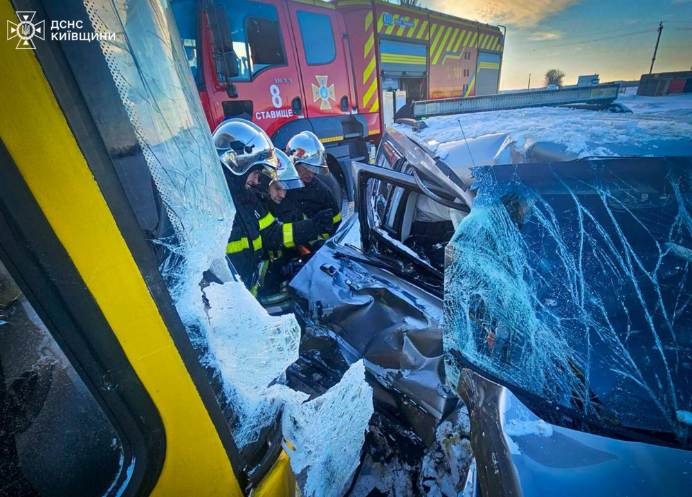 "На Білоцерківщині сталася ДТП за участю шкільного автобуса. 19 лютого о 07:53 до Служби порятунку «101» Білоцерківського району надійшло повідомлення про ДТП в селищі Ставище", - повідомляє ДСНС Київщини.