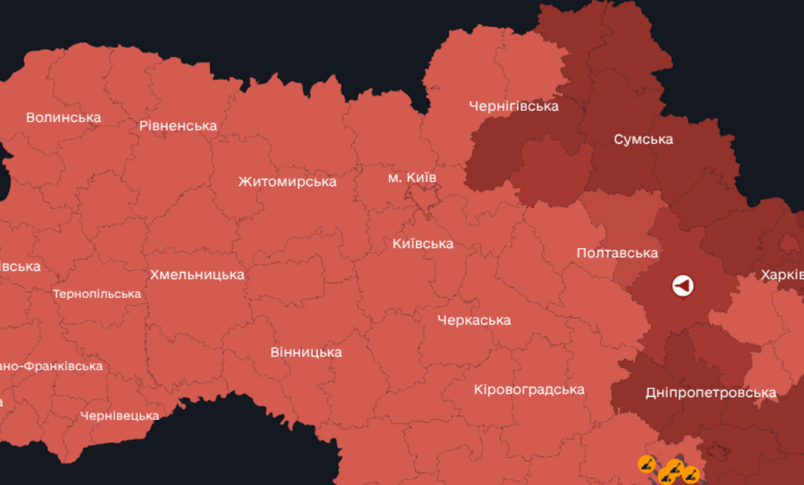 Згідно з офіційною картою моніторингу повітряних загроз ворог здійснив запуск МіГ-31К із східного напрямку. Ракетна небезпека зберігається понад 10 хвилин.