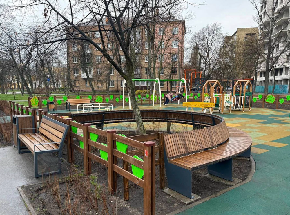 - Дитячий майданчик із гумовим покриттям та елементами інклюзивності. Оновлено спортивний майданчик. Тут є воркаут-зона, де облаштовано покриття з гранотсіву та зручні підходи, що робить тренування доступними за будь-якої погоди.