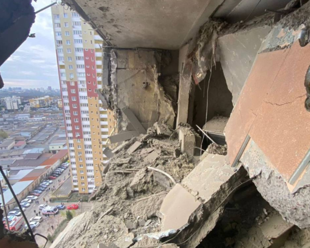 - Виявлено влучання уламків ракети в 6 поверх 16-поверхового житлового будинку. Без займання.