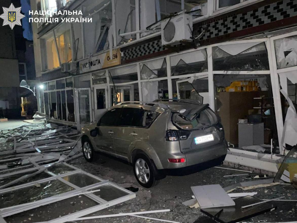- Пошкоджено офісну будівлю з подальшим горінням конструкцій та припаркованих автомобілів.