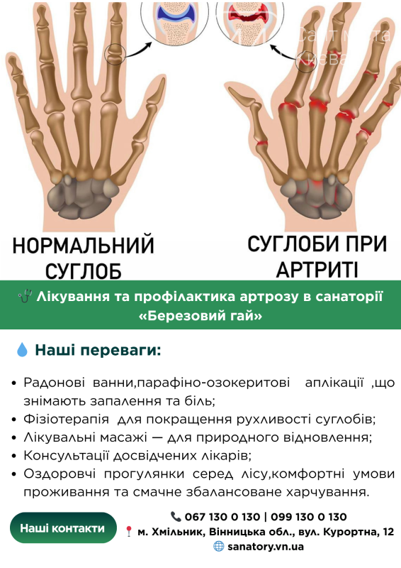 ? Лікування та профілактика артрозу в санаторії «Березовий гай» (м. Хмільник)