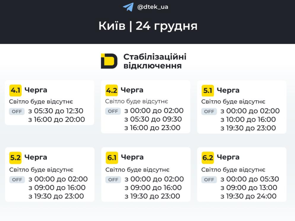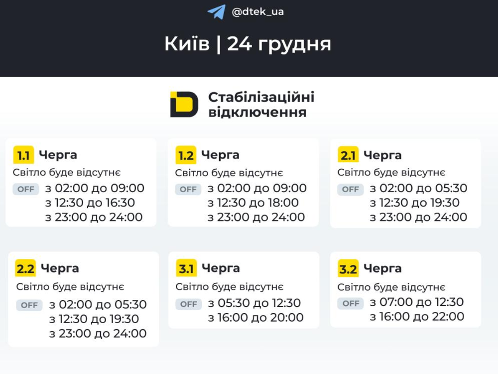 После дроново-ракетной атаки, произошедшей 23 декабря, энергетики ввели жесткие плановые отключения электроснабжения. На следующий день, в среду, улицы и дома будут без света более 10 часов!