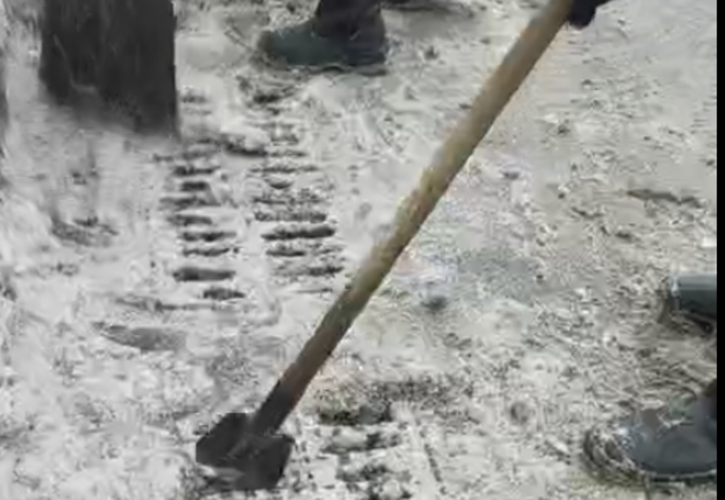 Бригады дорожников вручную и с помощью спецтехники очищают решетки ливнеприемников, поскольку они заблокированы льдом, замерзшей грязью и остатками противогололедных смесей в результате непогоды.