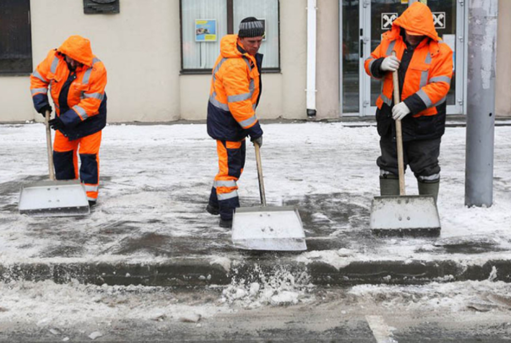 Специалисты коммунальных служб очищают ливнеприемники перед потеплением.