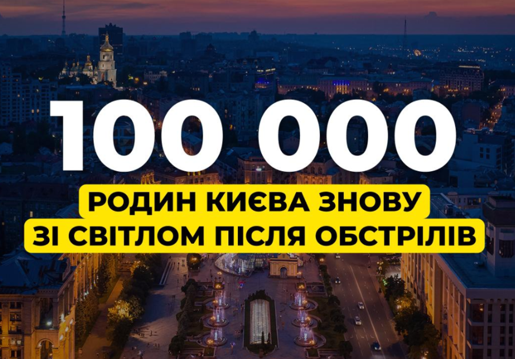 "Киев: вернули свет для 100 000 семей после обстрелов", - сообщает ДТЭК .