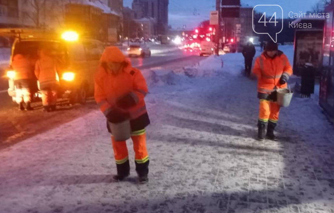 "Прежде всего, очищают от снега и обрабатывают противогололедными средствами главные магистрали, мосты, путепроводы, спуски и подъемы, подходы к остановкам общественного транспорта и переходы", - сообщает КГГА.