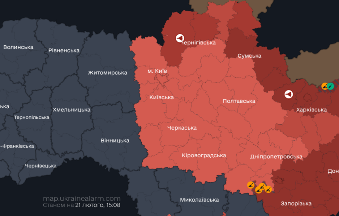 Также на официальной карте воздушных тревог Украины фиксируется приближение других опасных объектов – российских шахедов. В настоящее время они находятся в соседнем регионе – Черниговщине.