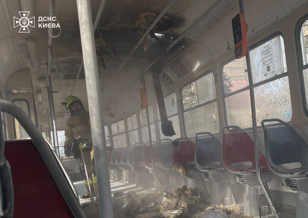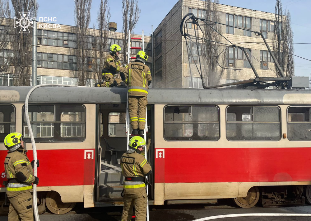 "Во время движения произошло возгорание трамвая", - сообщает ГСЧС Киева .