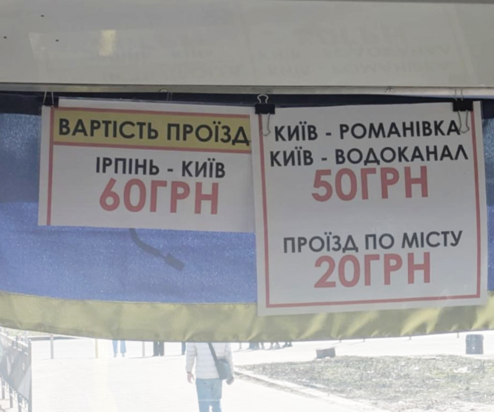 - В пределах Ирпеня стоимость проезда составляет 20 грн.