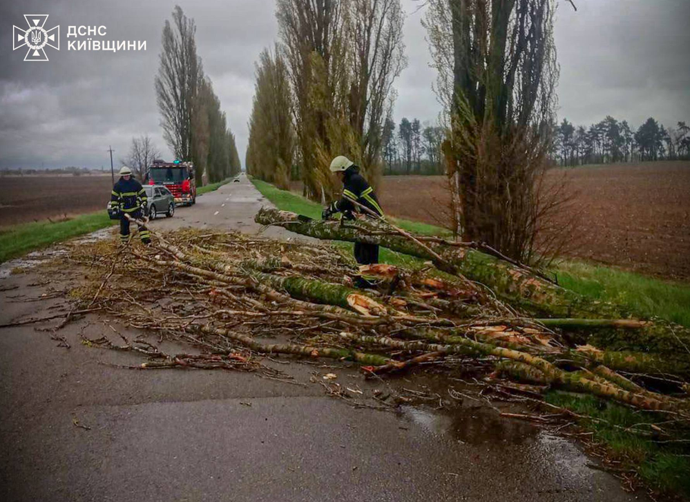 По данным ГСЧС Киевской области, несколько бригад спасателей привлечены к ликвидации последствий непогоды в таких районах:
