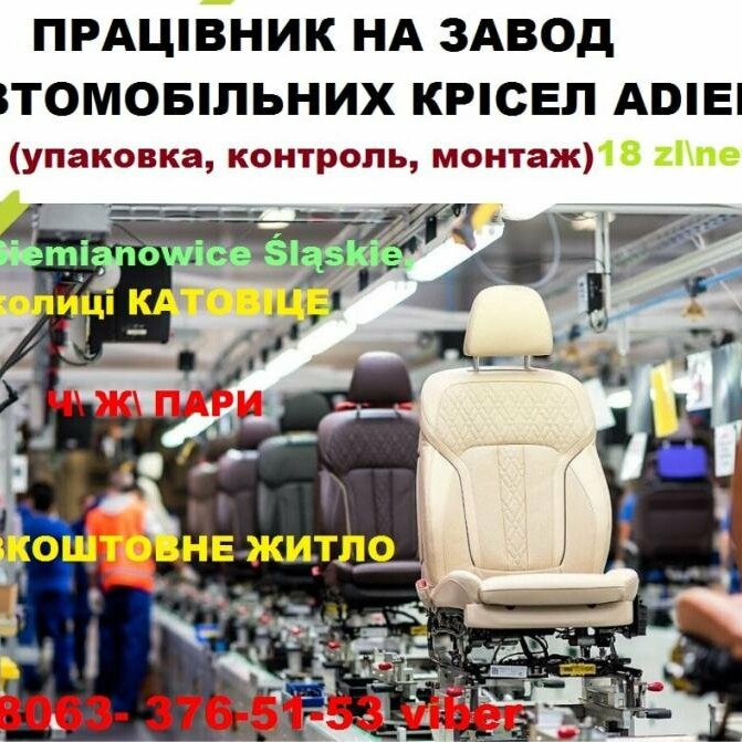 Працівник на завод автомобільних крісел Adient 18zl/netto
